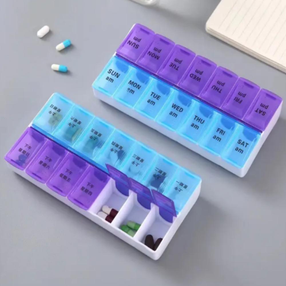 Porta Comprimidos Semanal Multiuso Com 14 Divisórias Para Remédios, Cápsulas E Suplementos Porta Comprimidos Semanal multiuso com 14 Divisórias para Remédios, Cápsulas e Suplementos – Organização Completa para Sua RotinaPorta Comprimidos Semanal – praticidade e segurança no controle da sua medicaçãoO Porta Comprimidos Semanal é ideal para quem precisa organizar remédios, cápsulas e suplementos ao longo da semana. Com divisórias individuais e tampas identificadas, ele garante que você nunca esqueça uma dose, mantendo tudo separado, visível e fácil de acessar.Compacto e leve, pode ser levado na bolsa, mochila ou necessário, sendo perfeito para uso doméstico, viagens ou rotina profissional.Benefícios do ProdutoOrganização semanal completa: 14 compartimentos individuais para planejar doses de manhã e noite por 7 diasIdentificação facilitada: marcações em inglês para rápida visualização dos dias e períodosPortátil e compacto: ideal para transporte e uso diárioMaterial resistente: proteção contra umidade e impactos levesAbertura segura: tampas individuais práticas e firmesMultiuso: ideal para comprimidos, cápsulas, suplementos, vitaminas e medicamentos controladosEspecificações TécnicasDimensões: 18,4 cm (L) × 8,5 cm (P) × 2 cm (A)Compartimentos: 14 divisórias (7 dias × 2 períodos)Marcação: dias da semana + períodos em inglêsMaterial: Plástico resistente e atóxicoConteúdo da Embalagem1 Porta Comprimidos Semanal com 14 divisóriasPraticidade e organização para uma rotina de cuidados mais segura e eficiente!