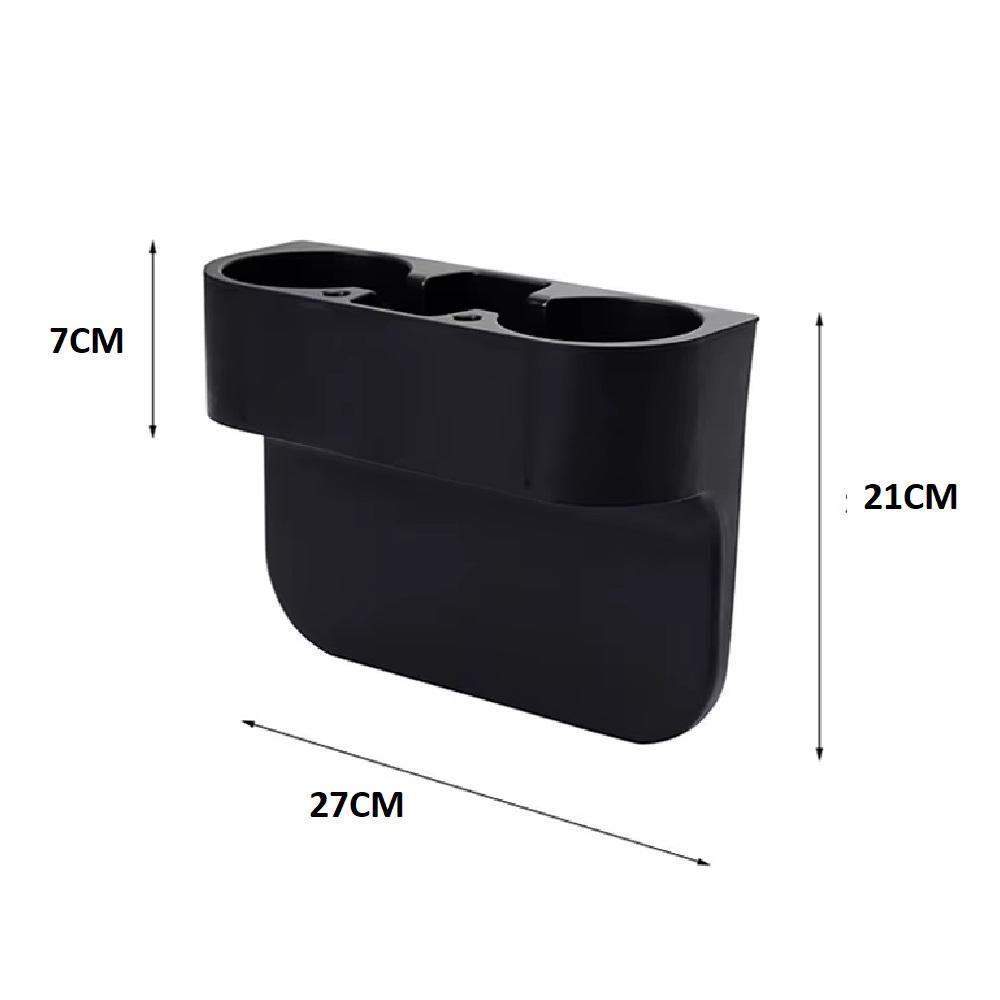 Porta Latas E Organizador Veicular Com Suporte Para Copo – Praticidade, Armazenamento E AcessoPorta Latas e Organizador Veicular com Suporte para Copo – Praticidade, Armazenamento e Acesso Rápido no CarroO Organizador Veicular com Suporte para Copo foi desenvolvido para tornar suas viagens mais práticas, seguras e organizadas. Ele preenche a lacuna entre o banco e o console, impedindo que objetos caiam nesse espaço e oferecendo compartimentos úteis para armazenar tudo o que você precisa ao alcance das mãos.Com design moderno e fabricação em material resistente, é o acessório ideal para quem busca funcionalidade no dia a dia, seja para acomodar latas, garrafas, celular, carteira, maquiagem, carregador ou pequenos objetos pessoais.Benefícios do ProdutoInstalação rápida – basta encaixar entre o assento e o console, sem ferramentas.Evita perdas de objetos – impede que itens escorreguem para baixo do banco.Organização imediata – espaço dedicado para celular, chaves, moedas, cartões, maquiagem e acessórios.Suportes integrados para latas e garrafas – mantém bebidas estáveis durante o trajeto.Material resistente – fabricado em PP de alta durabilidade, fácil de limpar e leve.Design universal – compatível com a maioria dos modelos de carros.Mais segurança – reduz distrações ao dirigir, mantendo tudo acessível.Especificações TécnicasMaterial: Polipropileno (PP) resistenteCor: PretoInstalação: Inserção direta na fenda do assentoModelo: UniversalMedidas: 27 cm × 21 cmConteúdo da Embalagem1 Organizador Veicular com Suporte para CopoPraticidade, organização e segurança reunidas em um único acessório.Ideal para motoristas que desejam manter o carro sempre limpo, funcional e com tudo ao alcance.