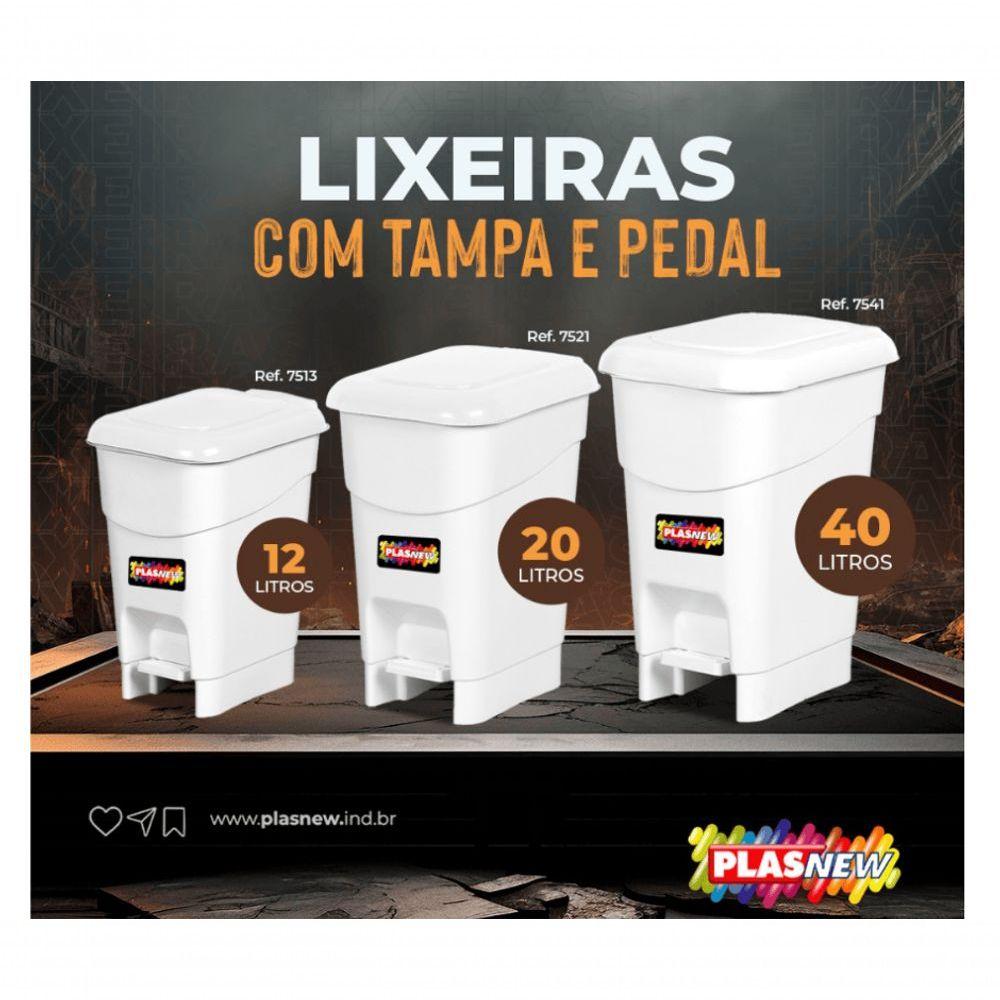 Coletor Cesto Lixeira De Pedal 12 Lt Plasnew Branco