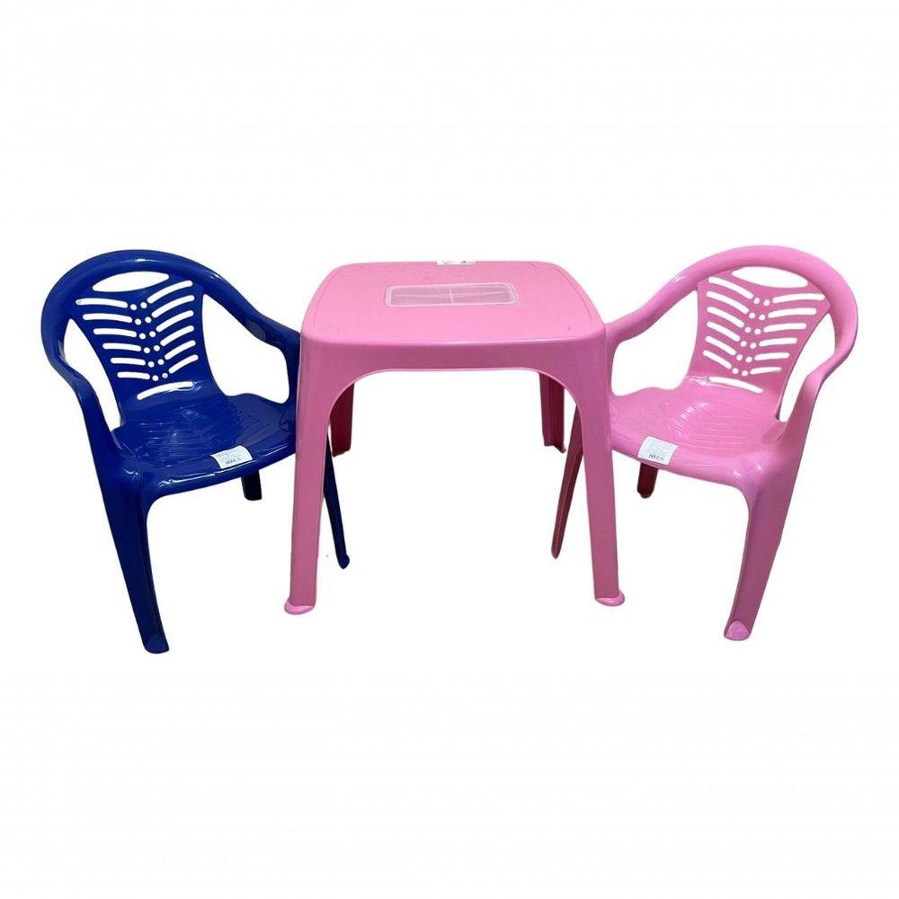 Mesa Infantil Rosa + 02 Cadeira Infantil Az/ro PlasnorthonContem:01 mesa infantil Rosa + 02 cadeira infantil sendo 01 azul e 01 rosaA Mesa Infantil de Plástico C/ Porta Objetos da marca Plasnorthon é perfeita para proporcionar diversão e praticidade para as crianças.Com altura de 57 cm e formato quadrado, a mesa oferece um espaço confortável para as atividades dos pequenos.Feita em plástico resistente, é fácil de limpar e suporta até 10 kg.Além disso, possui um porta objetos para guardar brinquedos e materiais de desenho.Recomendada para crianças a partir de 3 anos, essa mesa é ideal para estimular a criatividade e organização dos pequenos. Aproveite essa oportunidade e garanta já a sua!Poltrona Infantil: Conforto e diversão se unem nesta poltrona especialmente projetada para os pequenos. Feita com materiais seguros e duráveis, proporciona um lugar aconchegante para ler, brincar ou relaxar.
