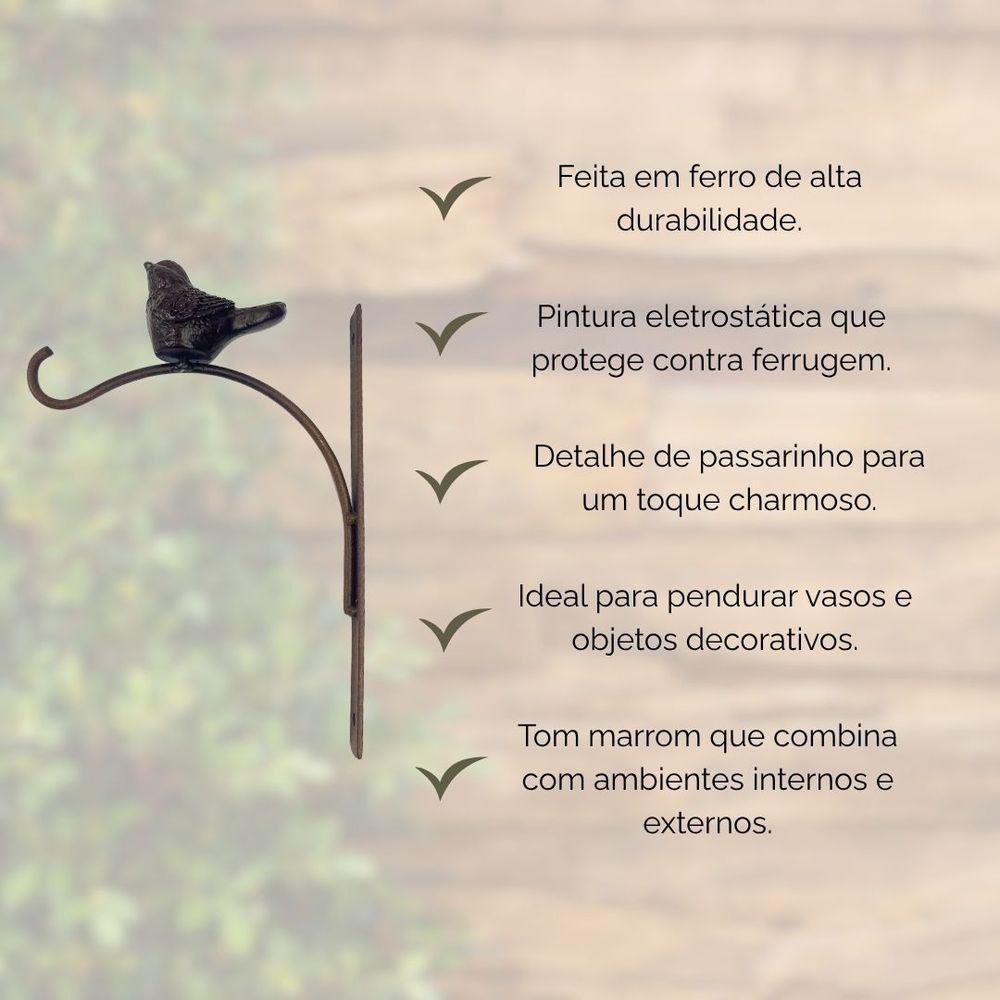 Mão Francesa SimplesSuporte Mão Francesa Ferro Marrom Decoração Jardim Só Art'sO Suporte Mão Francesa Ferro Marrom Decoração Jardim Só Art's é a solução perfeita para quem deseja agregar estilo e funcionalidade ao ambiente. Ideal para decorar jardins, varandas e áreas externas, esse suporte combina a resistência do ferro com o charme de um design clássico e discreto. O acabamento em tom marrom traz um toque rústico e elegante, permitindo que o item se adapte facilmente a diferentes estilos de decoração.Versátil, esse suporte pode ser utilizado para sustentar vasos, lanternas, objetos decorativos e outros itens leves, oferecendo praticidade sem abrir mão da estética. Desenvolvido para proporcionar e estabilidade, o Suporte Mão Francesa Só Art's é ideal para quem busca valorizar os detalhes do ambiente de forma prática e durável. Além de funcional, se transforma em um elemento decorativo por si só, compondo espaços externos e internos com personalidade.Produto de , para todo o , com e garantia de , garantindo e confiabilidade em sua compra. Características do ProdutoProduto: Suporte Mão FrancesaMaterial: FerroCor: MarromFinalidade: Decoração de Jardim e áreas externas ou internasAplicação: Suporte para vasos, lanternas, objetos decorativos e utilitários levesAcabamento: Pintura resistente em tom marromEstilo: Rústico, ideal para compor ambientes externos ou internosFixação: Por meio de parafusos ou pregos (não inclusos)Dimensões: 17cm de altura e 13 cm de larguraPeso: Leve e resistente, de fácil instalação: para todo o Documentação: Acompanha e garantia de Produto Marca Só Art's Você Vai Receber Em Sua Casa01 Suporte Mão Francesa Ferro Marrom Decoração Jardim Só Art'sIdeal para instalar em jardins, varandas e áreas externas, sustentando vasos, luminárias e peças decorativas de forma segura e elegante.Fabricado em ferro resistente com pintura marrom, combina durabilidade e charme, valorizando qualquer ambiente onde for instalado.Perfeito para quem busca um toque rústico e decorativo, harmonizando facilmente com ambientes naturais ou decorados em estilo vintage.Fácil instalação com fixação por parafusos, permitindo personalizar a altura e disposição conforme a necessidade do espaço.Produto pronto para para todo o , com e garantia de , assegurando tranquilidade na compra.Transforme o visual do seu jardim com detalhes que fazem a diferença e criam ambientes mais aconchegantes e personalizados.