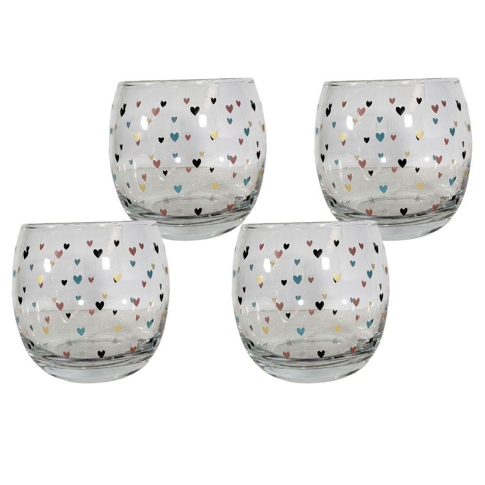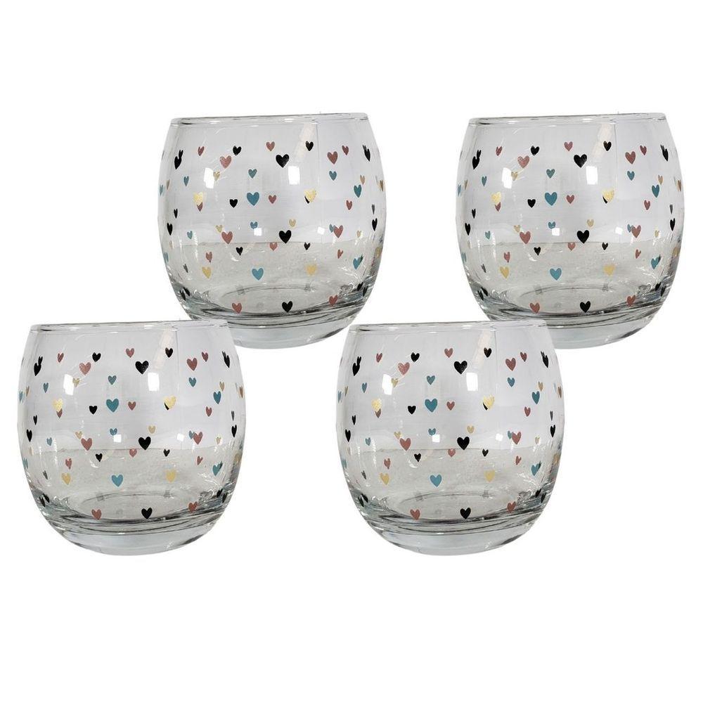 Jogo 4 Copo Redondo Baixo Para Drink água E Suco 345ml Decorado Mini Coração