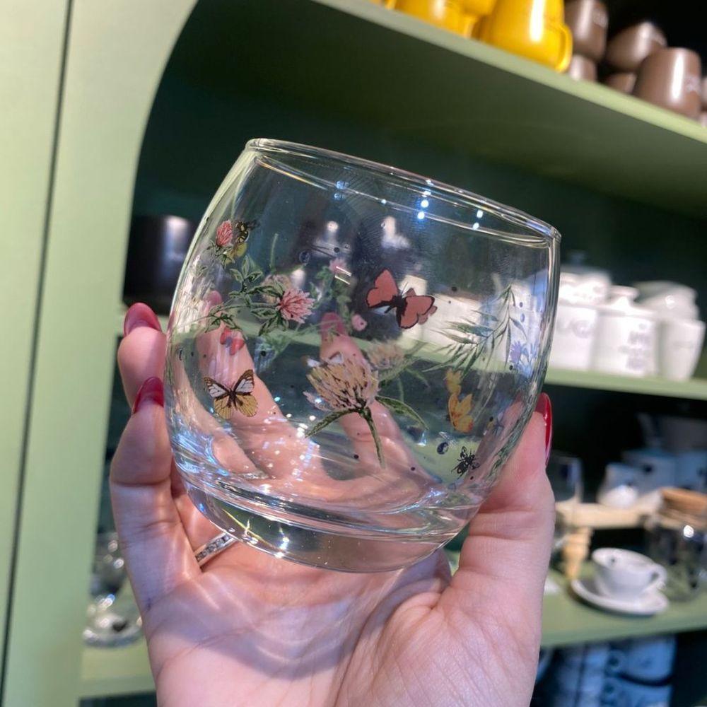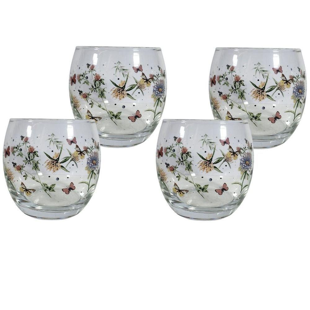 Jogo 4 Copo Redondo Baixo Para Drink água E Suco 345ml Decorado Borboleta