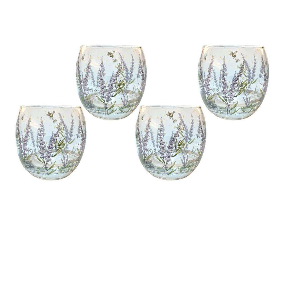 Jogo 4 Copo Redondo Baixo Para Drink água E Suco 345ml Decorado Lavanda