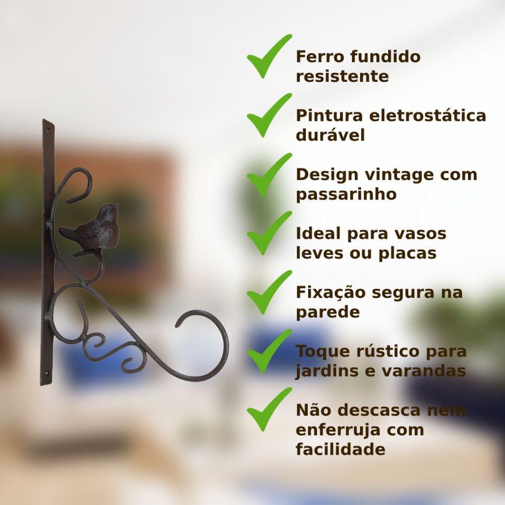 Gancho Arabesco InvertidoGancho De Parede Arabesco De Ferro Decorativo Suporte Vaso Flores Jardim Rústico Só Art'sO Gancho de Parede Arabesco de Ferro é a escolha perfeita para quem busca aliar funcionalidade e estilo na decoração de ambientes internos ou externos. Seu design rústico com detalhes em arabesco traz charme e sofisticação, valorizando o espaço onde for instalado. Ideal para suporte de vasos com flores naturais ou artificiais, esse gancho é uma peça decorativa que transforma seu jardim, varanda ou sala com um toque artesanal e acolhedor. Com estrutura resistente e acabamento refinado, é a solução ideal para pendurar vasos com e elegância.Características do produtoMaterial: Ferro de alta resistência, ideal para uso interno e externoDesign: Arabesco decorativo com traços clássicos e acabamento rústicoInstalação: Fixação por parafusos diretamente na parede, garantindo estabilidade (Não Inclusos)Indicação de uso: Suporte para vasos decorativos com flores em áreas como jardim, varanda, hall de entrada, sala ou cozinhaEstilo: Rústico, com toque artesanal que combina com ambientes naturais ou vintageCor: Pode conter variações naturais do acabamento rústico, o que torna cada peça únicaDurabilidade: Produto robusto e com alta durabilidade, resistente às condições climáticasTamanho: Dimensões proporcionais para sustentação de vasos leves, mantendo a estética e Manutenção: Limpeza simples com pano seco ou levemente úmido, sem necessidade de produtos químicosVocê vai receber em sua casa1 Gancho De Parede Arabesco De Ferro DecorativoProduto embalado com proteção para e garantia de Produto Marca Só Art'sExplicações para remover objeções de compra:- Ideal para quem quer pendurar vasos com flores sem abrir mão da beleza na decoração, trazendo sofisticação ao ambiente com um toque rústico.- Pode ser instalado facilmente em qualquer parede de alvenaria com auxílio de parafusos, mesmo em áreas externas como jardins e varandas.- A Estrutura em ferro proporciona excelente resistência e para pendurar vasos decorativos com tranquilidade.- O design arabesco valoriza a decoração do espaço, sendo uma peça funcional e decorativa ao mesmo tempo.- Produto enviado com e garantia de , garantindo a e procedência da sua compra.- Transforme seu espaço com estilo e personalidade ? porque sua casa merece o toque encantador do artesanato Só Art's