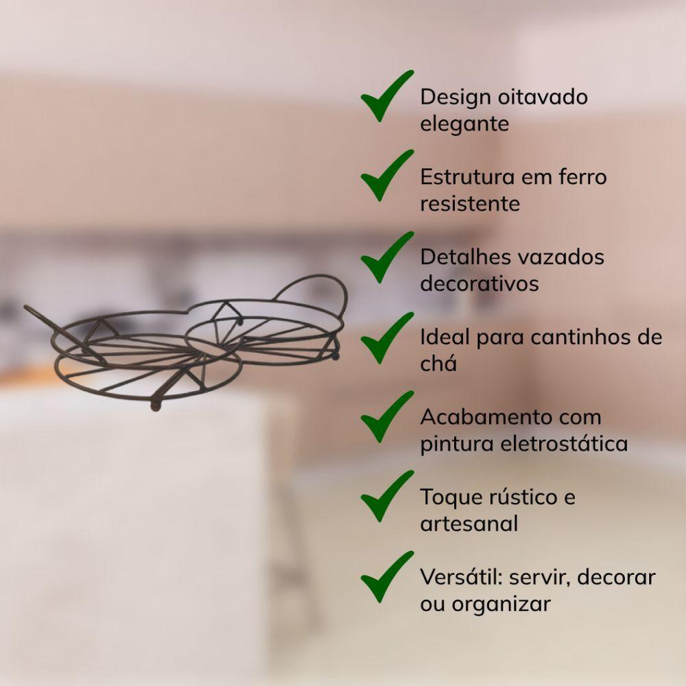 Bandeja Oitavada Biscoito FerroBandeja Ferro Vazado Oitavada Biscoito Decorativa Vintage Elegante Mesa Posta Presente Só Art'sA Bandeja Ferro Vazado Oitavada Biscoito é uma peça que transforma qualquer ambiente com seu visual autêntico e atemporal. Com design oitavado e acabamento vazado, ela une o charme vintage à sofisticação contemporânea. Ideal para compor mesas postas, servir com estilo ou simplesmente decorar com elegância. Seu formato exclusivo e estrutura robusta garantem durabilidade e beleza em qualquer uso. Um presente marcante e funcional para quem aprecia itens decorativos de qualidade e personalidade.Características do produto- Material: Ferro resistente com acabamento decorativo vazado- Formato: Oitavado (oito lados), com bordas bem definidas- Estilo: Vintage, com detalhes que remetem a peças antigas, mas com um toque moderno e elegante- Cor: Acabamento metalizado envelhecido (variação conforme iluminação)- Uso: Decorativo e funcional, ideal para compor mesas postas, bandejas de centro, aparadores ou servir com charme- Dimensões aproximadas: 39,5 cm de largura x 19,5 cm de comprimento x 8 cm de altura- Acabamento artesanal que valoriza o aspecto estético e traz exclusividade à peça- Produto versátil, resistente à corrosão em ambientes secos, com manutenção simples e duradoura- Origem: Produto com produção cuidadosa e acabamento refinado- Indicação: Para uso em casa, eventos, recepções, mesas decoradas e ambientes internosVocê vai receber em sua casa- 1 Bandeja Ferro Vazado Oitavada Biscoito Decorativa Vintage EleganteProduto Marca Só Art'sPode ser usada como centro de mesa, suporte para servir, ou até como base decorativa com velas, arranjos ou livros.Seu design vazado permite um toque de sofisticação sem exagero, combinando com decorações clássicas ou modernas.Por ser feita de ferro, é extremamente resistente e durável, ideal para uso contínuo em ambientes internos.Ótima opção para presentear com estilo e bom gosto em datas especiais, como casamentos, aniversários ou inaugurações.A manutenção é prática: basta um pano seco ou levemente umedecido para manter o brilho e a beleza da peça.Transforme sua decoração com charme e autenticidade ? sua casa merece uma peça com alma como essa da Só Art's.