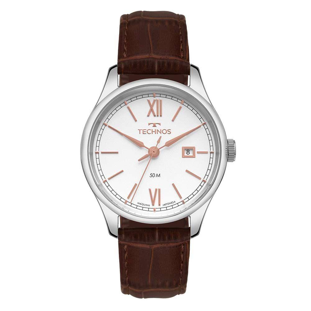 Relógio Technos Masculino Executive Prata - 2115tyz/0kRelógio Technos Executive, de design clássico e mostrador de fácil leitura na cor prata, analógico com data na posição de 3 horas e numeração romana, que traz elegância ao relógio. Produto 100% em aço inoxidável, banhado em dourado, com resistência à água de 50 metros e pulseira de couro legítimo na cor marrom.Banho - PrataTipo - AnalógicoCor da Caixa - PrataMaterial da Pulseira - CouroFormato - RedondoCor do Mostrador - PrataTipo de Fecho - FivelaGarantia - 12 mesesCor da Pulseira - MarromLargura da Caixa (cm) - 4,1Resistência à Água - 5 ATMCor - PrataTamanho - MédioGênero - Masculino