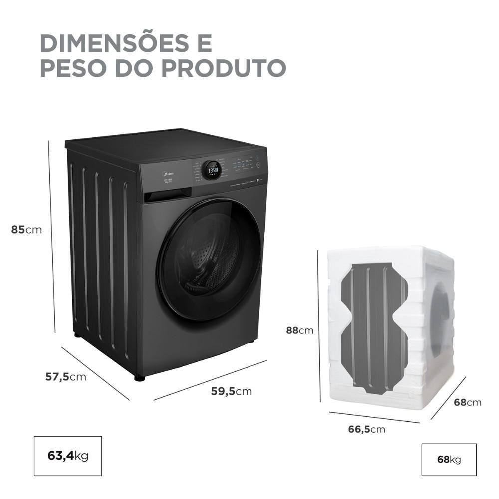 Lava E Seca Midea 11kg Mf201 Slim Wi-fi Healthguard Titanium Titanium 110VLava e Seca Midea 11Kg MF201 Slim Wi-Fi HealthGuard Titanium - Compacta, Conectada e PoderosaA Lava e Seca Midea 11kg Slim HealthGuard alia tecnologia avançada, design moderno e praticidade em um único produto. Com design slim, possui dimensões reduzidas que otimizam espaço sem comprometer a capacidade, garantindo a mesma performance das máquinas tradicionais.Conectividade e InteligênciaControle sua lava e seca de qualquer lugar pelo aplicativo SmartHome ou por comandos de voz ( e Assistant). Além disso, a Função Especialista recomenda a lavagem mais adequada de acordo com o tipo de roupa e nível de sujeira, garantindo praticidade e eficiência no dia a dia.Tecnologia HealthGuardExclusiva da Midea, combina funções que garantem roupas mais limpas, higienizadas e livres de impurezas:Steam Care: vapor em alta temperatura que esteriliza roupas, eliminando germes e bactérias.Auto Clean: ciclo de limpeza que remove resíduos do tambor.Esterilizar: lavagem a 70°C por mais de 30 minutos para eliminar micro-organismos.Limpeza do Tambor: programa específico para higienização interna.Recursos de PerformanceFunção Turbo: acelera o ciclo de lavagem, economiza Água e garante roupas mais limpas em menos tempo.Tecnologia Inverter: motor eficiente, silencioso, durável e econômico.Função Desodorizar: circulação de ar quente que remove odores dos tecidos.Programas e Funções EspeciaisSão 20 programas e 13 funções para atender todas as necessidades da sua lavanderia, incluindo: Favorito, Algodão, Sintético, Rápido 15?|60?, Delicado|Lã, Pesado|Jeans, Edredom, Super Eco e Esterilizar. Pelo aplicativo, você ainda acessa programas exclusivos como Roupas de Bebê, Tênis, Sutiã, Roupas Escuras e Esporte.Funcionalidade ExtraCom Botão Lunar em LED e Painel Touch, a interface é moderna, intuitiva e fácil de usar. E para maior economia, a Função Super Eco permite lavar com Água fria sem comprometer a performance.A Lava e Seca Midea 11Kg Slim Wi-Fi HealthGuard Titanium foi projetada para quem busca tecnologia, praticidade e cuidado com as roupas, tudo em um design compacto que se adapta a qualquer espaço.Especificações TécnicasCapacidade total: 11KgCapacidade de secagem: 7KgVolume do tambor: 40,2LWi-Fi: Sim com o Aplicativo Midea: Sim com e : Sim ( é nos idiomas inglês e português)Tipo: Front Loading automáticaAcesso ao cesto: FrontalDimensões do produto: Altura 85cm x Largura 59,5cm x Profundidade 57,5cm. Peso 63,4KgDimensões do produto embalado: Altura 88cm x Largura 68cm x Profundidade 66,5cm.Profundidade do motor ao início da porta (cm): 61,5Profundidade com a porta aberta (cm): 104Peso bruto (kg): 68Material interno (cesto): Aço inoxMaterial externo: Plástico / Aço / VidroCor da cabine: TitânioCor da porta: PretaCor interna: InoxProgramas (quantidade): 14 + 5 n