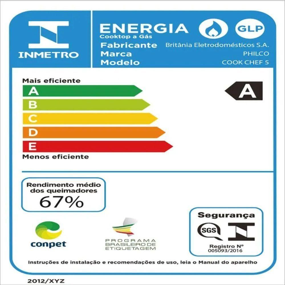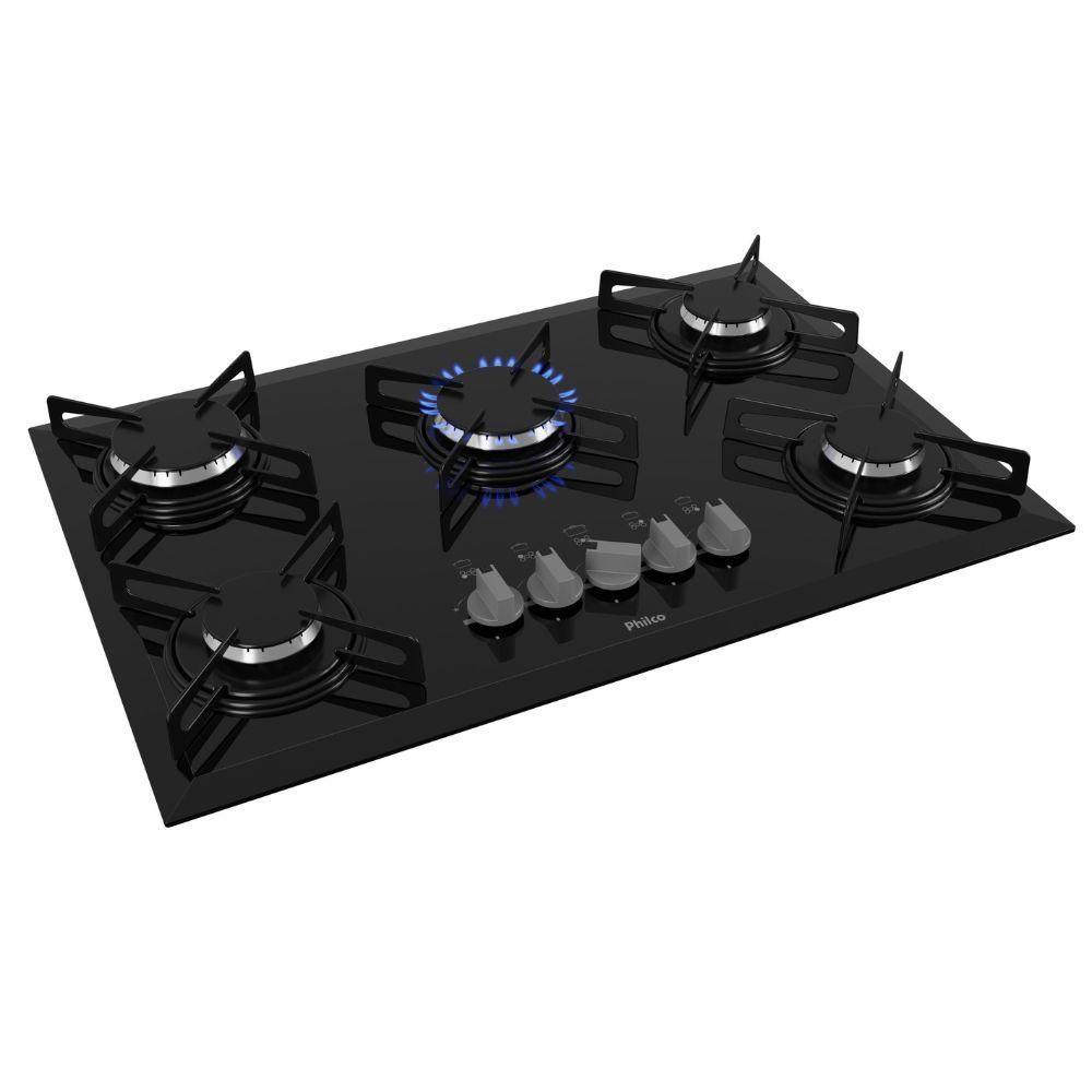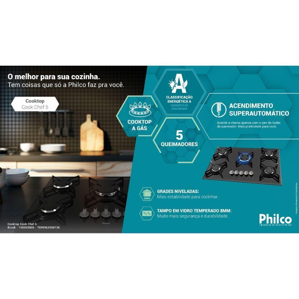 Cooktop 5 Bocas Philco Automático CHEF5 Vidro Temperado Vidro Preto Bivolt