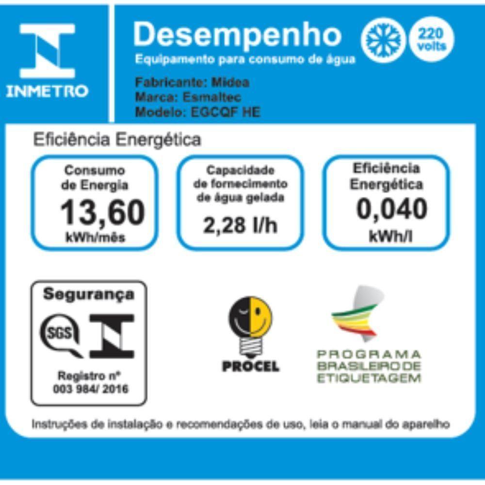 Bebedouro De Coluna Com Garrafão Inferior Esmaltec EGCQF He Inox 220VO bebedouro de Água quente e fria da Esmaltec é um equipamento moderno e eficiente, projetado para oferecer Água de qualidade tanto em temperaturas frias quanto quentes. Com um design elegante em inox, este bebedouro é perfeito para ambientes corporativos, salas de espera, escolas, academias e residências.? Indicador luminoso para reposição de Água Luz vermelha se acende, indicando a necessidade de troca do garrafão. ? Interruptores independentes de liga/desliga para a Água quente e gelada Permitem colocar as funções de aquecimento e refrigeração em standby, sem a necessidade de desligar o produto da tomada. ? Luz noturna Indica a saída de Água em ambientes de baixa luminosidade. ? Trava de para Água quente Água quente com a necessária. ? Reservatório de Água em aço inox vedado Garante a qualidade da Água do garrafão ? Boia de nível da Água Indica a necessidade de limpar o aparador de Água. ? Aparador de Água removível Facilita a limpeza. ? Grade do aparador de Água em aço inox removível ? Compartimento de garrafão interno Garrafão de Água embutido que facilita a reposição, sem a necessidade de levantar peso. ? Três opções de Água Quente, natural e gelada. Temperatura ideal para o preparo de chás e cafés solúveis. ? Refrigeração por compressor Mais eficiente e econômico que os outros sistemas de refrigeração. INFORMAÇÕES TÉCNICAS Potência Elétrica (W) - 480 Gás - R134a Capacidade fornecimento Água gelada (L/h) - 2,28 Atenção: 1. Verifique a voltagem correta para o seu equipamento. Grande parte dos eletrodomésticos no está disponível em duas voltagens: 110V ou 220V. Certifique-se qual a voltagem de sua residência e selecione o produto conforme essa especificação. 2. Devido às normas da ABNT e às resoluções nº 13 de 2006, nº 2 de 2007 e nº 8 de 2009 do CONMETRO, os fabricantes estão mudando as tomadas para o padrão. Para utilizar este produto, será preciso adaptador ou a troca da tomada antiga. Não nos responsabilizamos por esta alteração.