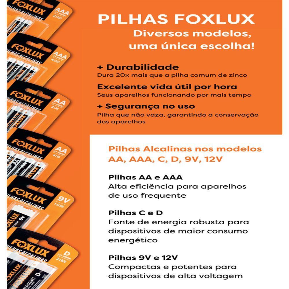 Kit 10 Pilha Alcalina 12v A23 FoxluxPILHA ALCALINA 12V A23 FOXLUXA Pilha Alcalina 12V A23 Foxlux oferece alta durabilidade e desempenho para dispositivos que exigem uma fonte de energia . Com tecnologia alcalina, garante um fornecimento estável de energia e maior vida útil.CARACTERISTICAS TECNICAS Tipo: Pilha Alcalina Modelo: A23 Voltagem: 12V Livre de metais pesados como mercúrio e cádmio Longa durabilidadePARA QUE SERVEIndicada para controles remotos, alarmes automotivos e residenciais, campainhas sem fio e outros dispositivos eletrônicos que utilizam pilhas do tipo A23.COMO UTILIZARVerifique a compatibilidade da pilha com o dispositivo. Insira a pilha respeitando a polaridade indicada no compartimento. Substitua todas as pilhas ao mesmo tempo para obter melhor desempenho.BENEFICIOS Alta durabilidade Energia estável para dispositivos eletrônicos Melhor desempenho em comparação com pilhas comuns Livre de metais pesados, sendo menos prejudicial ao meio ambienteSOBRE A MARCAA Foxlux é uma marca reconhecida pela qualidade e confiabilidade de seus produtos. Com foco em soluções elétricas e de energia, atende consumidores e profissionais que buscam alto desempenho e durabilidade.