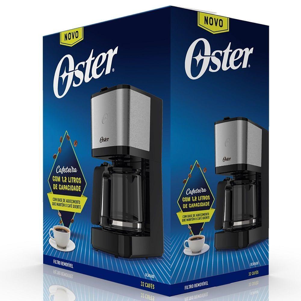 Cafeteira Oster Inox 1,2L 220VPara momentos gostosos em famíliaConheça a Cafeteira Inox Oster e compartilhe um café com aroma e sabor especiais. Fácil de usar, ela simplifica a sua rotina. E você ainda ganha elogios por um café bem preparado. Além disso, o acabamento em inox traz ainda mais beleza para a sua cozinha.Café quentinho a qualquer momentoCom a função Manter Aquecido na base, basta deixar a cafeteira ligada que você vai ter o café na temperatura ideal por muito mais tempo.Praticidade e EconomiaCom o filtro removível, você não precisa se preocupar em comprar filtros de papel. Ele é lavável e reutilizável.Descrição do ProdutoJarra em vidroSistema corta pingosBase de aquecimentoFiltro e porta filtro são removíveisCapacidade de 1,25 litroRende até 32 cafés (xícaras de 40ml)Painel com acabamento em inoxDescrição ComercialA Cafeteira Elétrica Desperta é perfeita para quem tem uma rotina atarefada e precisa de um cafezinho feito de forma simples e rápida. Fácil de limpar e compacta, é a sua melhor aliada na rotina. Seu design enaltece qualquer cozinha com seus detalhes e acabamentos. Possui uma jarra de vidro fácil de lavar, que não deixa resíduos nem odores, e com capacidade para fazer 32 cafés, ou 1,25L. A base de aquecimento não queima o café, mantendo-o aquecido na temperatura ideal.Com 750W de potência (disponível em 127V e 220V), é eficiente para preparos mais rápidos. A cafeteira possui indicadores de medida de água na parte interna e de café na jarra, facilitando o preparo.Dica de uso: Para manter o café quente, recoloque a jarra na placa de aquecimento após servir, pois ela mantém a temperatura ideal enquanto a cafeteira estiver ligada. O café permanecerá quente até que a cafeteira seja desligada. Desligue a cafeteira quando a jarra estiver vazia ou quando não estiver sendo utilizada, retirando da tomada.Especificações TécnicasModelo: OCAF600-220Código do Produto: OCAF600Tensão: 220VPotência: 750WConsumo: 0,75 kWhCapacidade: 1,25LClassificação Fiscal / NCM: 8516.71.00CEST: 21.048.00Certificações: InmetroCódigo da Certificação: SGSSelo de Segurança: OCP SGSCódigo de Barras: 7898700210705 | 7898700210712Dimensões do Produto [LxAxP]: 150 x 315 x 260 mmPeso: 1,58 KgMedidas Embalagem [LxAxP]: 280 x 340 x 190 mmPeso Embalagem: 1,8 KgGarantia: 12 meses