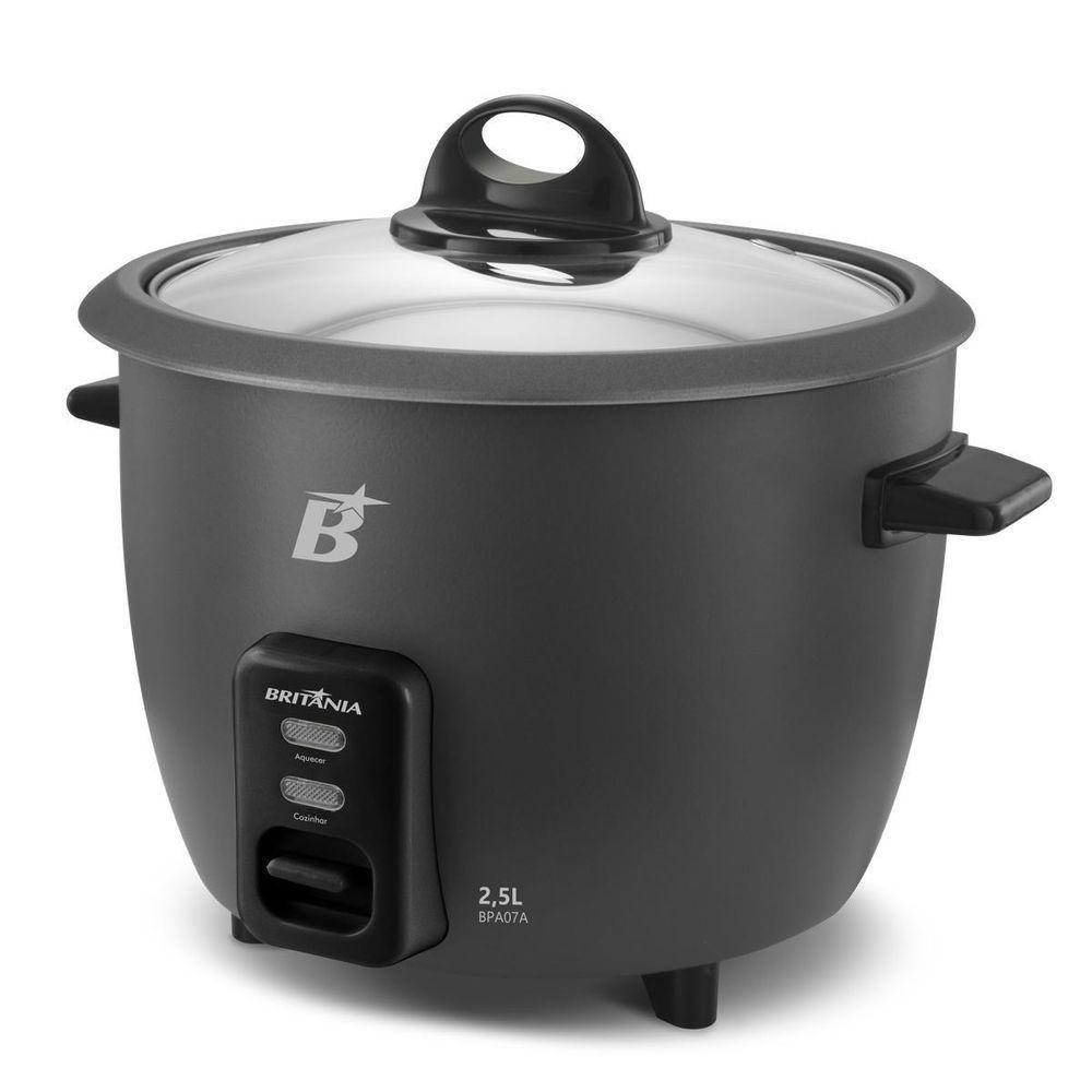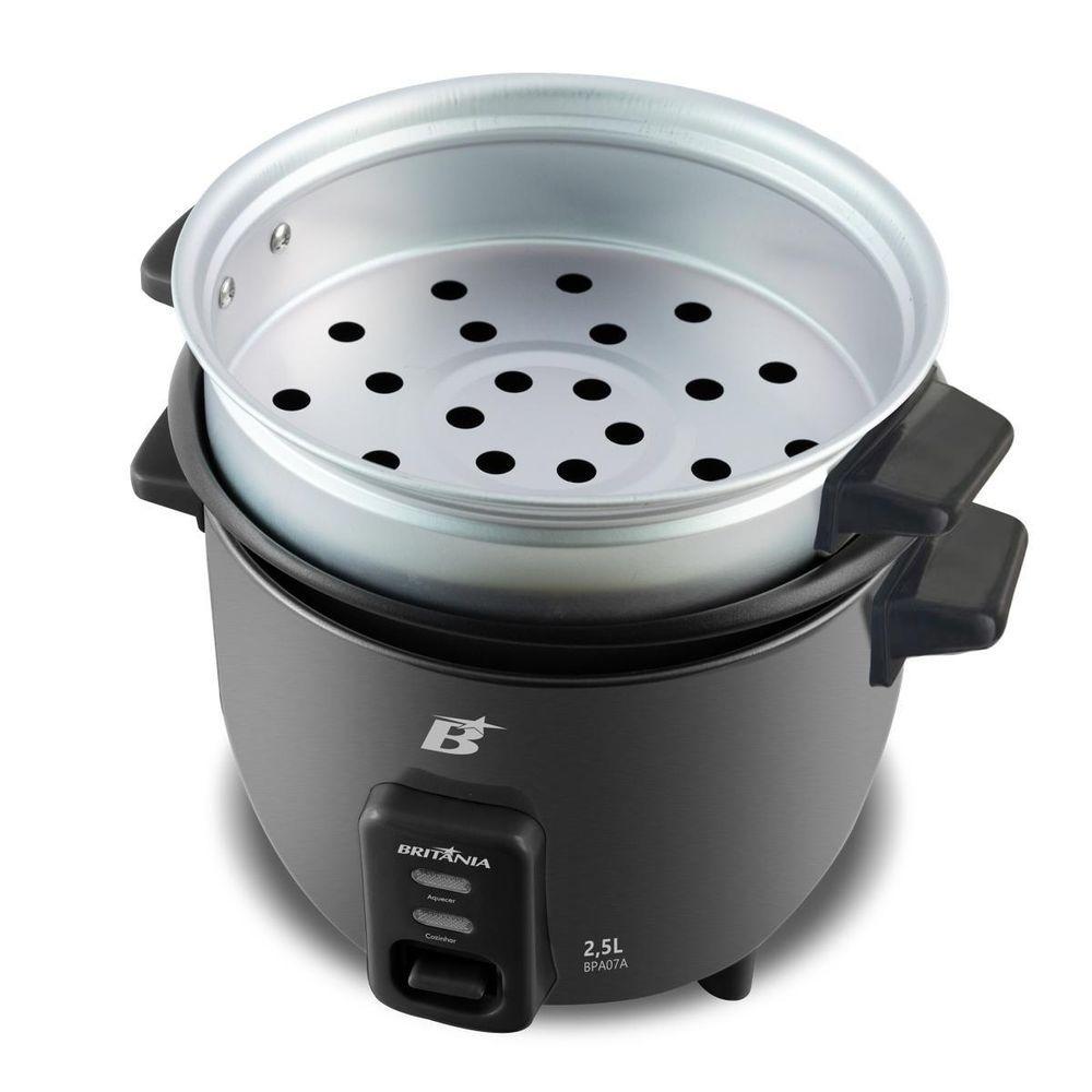 Panela Elétrica Multifuncional Britânia 7 Xícaras 500W BPA07 220VPrepare refeições completas e deliciosas com mais praticidade. Seja um arroz soltinho no ponto, um legume no vapor fresquinho ou um refogado saboroso, a Panela Elétrica Multifuncional Britânia 7 xícaras 500W BPA07 faz tudo isso e muito mais. Com capacidade para 7 xícaras, ela garante que toda a família possa saborear refeições caseiras e nutritivas. Possui tampa de vidro temperado que permite visualizar cada etapa do cozimento, enquanto a saída de vapor garante que seus alimentos fiquem no ponto certo. Além disso, o recipiente removível com revestimento Dura Mais é mais resistente e fácil de limpar, facilitando a sua rotina na cozinha. Com a bandeja de alumínio com alças, você pode preparar alimentos no vapor, adicionando ainda mais saúde e sabor às suas refeições. Com a Panela Elétrica Multifuncional Britânia você tem praticidade e versatilidade na cozinha, sem abrir mão de um toque de elegância. Prepare refeições saudáveis e deliciosas, com a praticidade e a segurança que você merece.CaracterísticasCapacidade da tigela em xicaras: 7Capacidade: 2,5LPotência: 500WRevestimento da tigela: antiaderenteFunções: Refogar, cozinhar e manter aquecidoAlças lateraisTigela removívelTigela pode ser levada à lava-louçasRecipiente para cozimento de legumes no vaporDesligamento automático.Observação: Somente faturamos para o nosso consumidor final, ou seja, não faturamos pedidos para CNPJ por este portal de vendas.Marca: BritâniaModelo: BPA07ACor: PretoEstado: NovoTampa: VidroPotência: 500 (W)Toque frio: SimCapacidade: 7 xícarasDesligamento automático: SimBandeja perfurada: SimDisplay: MecânicoCopo dosador: SimEspátula: SimRevestimento: AntiaderenteSistema de cozedura: A vaporAltura do produto: 28 cmLargura do produto: 27 cmComprimento do produto: 23,5 cmPeso do produto: 1,552 kgAltura com embalagem: 25,4 cmLargura com embalagem: 24,6 cmComprimento com embalagem: 24,2 cmPeso com embalagem: 1,8 kgGarantia: 360 Dias