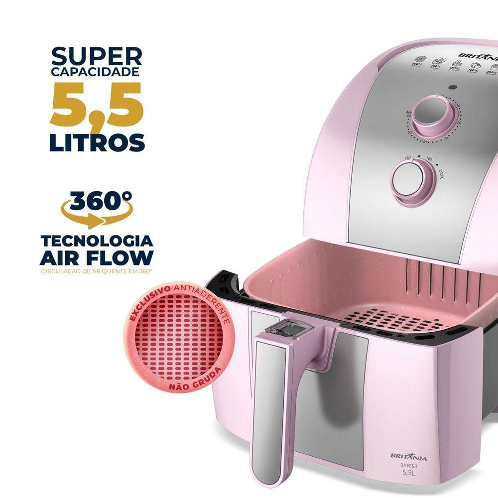 Air Fryer Rosa Britânia 5,5L Sem Óleo 1500W BAFE53 110V
