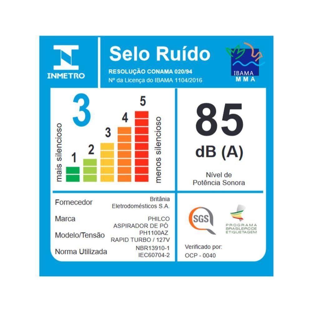 Aspirador de Pó Philco PH1100AZ 2 em 1 Rapid Turbo 1L 1250W 110VAspirador de Pó Philco PH1100AZ 2 em 1 Rapid Turbo 1L 1250W traz grande praticidade para o seu dia-a-dia! Ele aspira pó e conta com filtro HEPA que elimina 99,5% de ácaros, poeiras e partículas finas da sujeira. Além disso, seu tanque com capacidade para 1L para pó e acompanha acessórios para cantos e frestas.- Aspirador 2 em 1- Design moderno e compacto- Fácil de manusear e carregar- Compartimento de pó com 1L- Filtro HEPA permanente lavável - Cordão elétrico 5m - Com acessório para cantos e frestas - Acessório para Pisos e Carpetes- Pode ser usado sem a haste - Porta cordão - Composição: Plástico e metalEspecificações Técnicas:Marca: PhilcoFunção Soprar: NãoAspira Líquidos: NãoModelo: PPH1100AZEstado: NovoCapacidade (L): 1Filtro: HepaAcessórios: acessório para cantos e frestas / acessório para Pisos e CarpetesPotência (W): 1250Comprimento cordão elétrico (metros): 5Consumo (kW/h): 1,25Porta fio: SimCor: AzulTipo: Com rodasAltura do produto: 101 cmLargura do produto: 22,5 cmComprimento do produto: 12,5 cmPeso do produto: 1,65 kgAltura com embalagem: 13,7 cmLargura com embalagem: 65 cmComprimento com embalagem: 16,6 cmPeso com embalagem: 1,98 kgGarantia (Dias): 360Observação: Somente faturamos para o nosso consumidor final, ou seja, não faturamos pedidos para CNPJ por este portal de vendas;