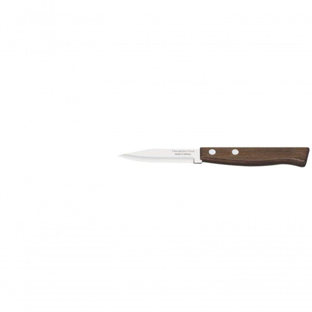 Faca Para Legumes E Frutas Tramontina 3" Tradicional Madeira Natural Rústicae natural, a linha Tradicional combina com um bom churrasco. As lâminasde aço inox são resistentes e permitem um corte fácil e . O cabo,em madeira ipê, dá um charme todo especial à sua mesa. Com Tramontina,servir bem já virou tradição.Recomendações de Uso:Antes do uso: Antes de utilizar o , remova as eventuais etiquetas e lave-o com água e de uso: Durante a lavagem use somente esponja macia, outros tipos de produtos, como palha de aço, poderão riscar ou prejudicar o brilho do aço inox. Enxágue bem a peça a fim de remover totalmente os resíduos dos produtos de limpeza, que por serem abrasivos, podem danificar o inox. Após a lavagem enxugue a peça, pois as substâncias químicas contidas na água poderão causar manchas. Sempre que possível use água quente, pois renova o brilho do talher. Evite o das peças com superfícies quentes, pois podem provocar a descoloração do produto. Quando usar a máquina de lavar louça, recomendamos retirar o talher logo que tenha terminado o ciclo enxaguar, a fim de que os mesmos sejam secados manualmente.- Tenha cuidado ao Manusear produtos cortantes e perfurantes e mantenha-os fora do alcance de crianças.- Foto meramente ilustrativa.- Embalagem blister.Informações Adicionais:- Cabo de madeira natural ipê, de aparência rústica, fixado por rebites de alumínio.- Lâmina de aço inox com Maior durabilidade do fio Devido ao tratamento térmico que recebe.