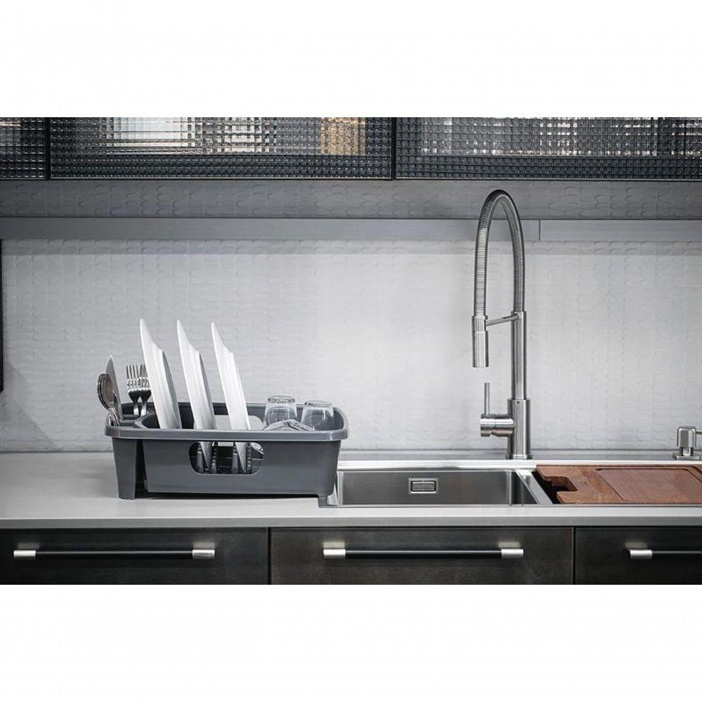 Escorredor De Louça Tramontina Plurale Em Polipropileno GrafiteOrganizar a pia depois das refeições fica muito mais simples com o escorredor de louça Tramontina em plástico. Produzido em peça única e com material resistente a impactos e ao calor, ele oferece estabilidade e praticidade para o dia a dia. O design compacto aproveita bem o espaço da bancada, enquanto a estrutura interna permite acomodar tigelas, copos e até panelas pequenas. A base vazada facilita o escoamento da água, mantendo tudo seco e no lugar certo. Fácil de limpar e sem partes que oxidam, é uma solução inteligente para manter a cozinha organizada sem complicação.Recomendações de Uso:Modo de Uso: ;Use apenas sabão ou detergente e uma esponja macia. Outros tipos de produto como palha de aço, poderão riscar ou prejudicar o brilho da peça.- Foto meramente ilustrativa.Informações Adicionais:- Alças laterais anatômicas;- Robusto: feito em polipropileno;- Abertura para escoamento de água;- Com porta-talheres. Capacidade para 9 pratos.