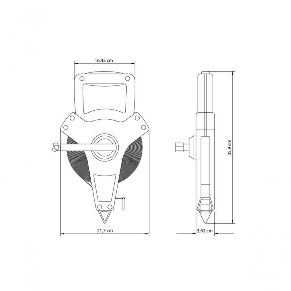Trena Tramontina Master Em Fibra De Vidro Com Corpo Em Abs 50 MA Trena Tramontina MASTER em Fibra de Vidro com Corpo em ABS 50 m é perfeita para quem necessita de uma ferramenta para longas distâncias. Para quem trabalha em topografia, perícias e na construção de grandes empreendimentos, a trena é indispensável por ser produzida em fibra de vidro evitando a condução de eletricidade e garantindo mais . Você terá mais leveza podendo carregá-la para qualquer lugar, além de ser resistente à corrosão devido ao corpo feito em ABS. A empunhadura emborrachada garante mais conforto no manuseio, assim como, mais facilidade na hora da limpeza da fita. Qualidade é com a Tramontina!Recomendações de Uso:Modo de Uso: Use óculos, luvas e outros equipamentos de proteção de acordo com a tarefa a ser executada. Mantenha a ferramenta sempre limpa para um melhor agarre, pois usá-la suja com graxa ou óleo pode causar acidentes. Armazene em limpo e seco.- Foto meramente ilustrativa.Informações Adicionais:- Fita em fibra de vidro;- Corpo em ABS injetado;- Ponta para fixação no solo;- Empunhadura emborrachada;- As ferramentas são produzidas e testadas conforme normas específicas;- As ferramentas são submetidas a testes de aplicação prática para garantir sua resistência em uso intenso;- Todas as ferramentas de medição são inspecionadas e verificadas para manter um alto nível de precisão.