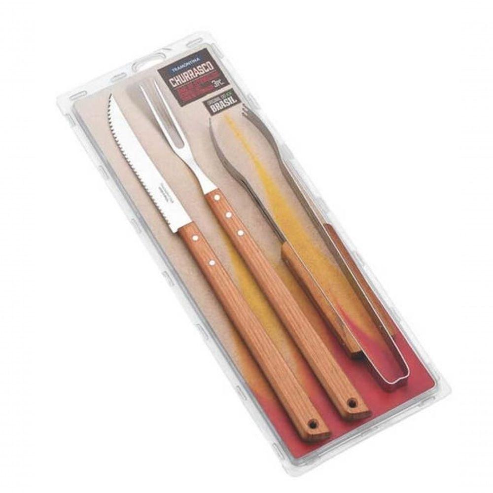 Jogo De Utensílios Tramontina Churrasco 3 Peças Em Aço Inox E Madeira