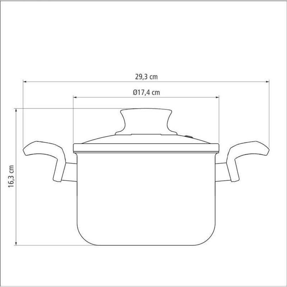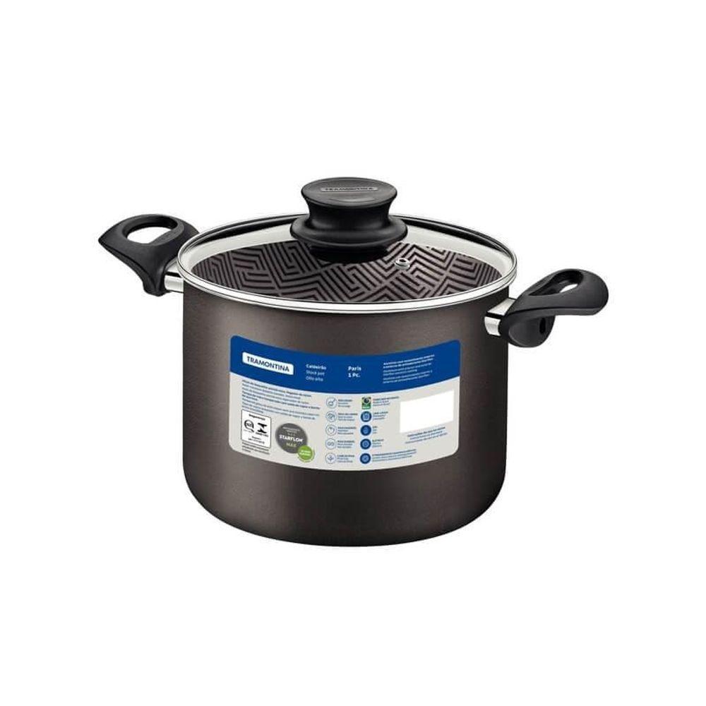 Caldeirão Tramontina Paris 16cm Em Alumínio Com Revestimento Antiaderente Chumbo E Tampa De VidroCom o caldeirão Tramontina Paris em alumínio com revestimento interno e externo em antiaderente Starflon Max chumbo e tampa de vidro, preparar sopas, caldos e cremes será uma experiência ainda mais funcional e prática. Com 16 centímetros e capacidade de 2,1 litros, ele é produzido em alumínio com espessura de 1,8 milímetro, garantindo um cozimento rápido e uniforme. O revestimento antiaderente Starflon Max evita que os alimentos grudem, tornando a limpeza muito mais fácil. A tampa de vidro temperado permite acompanhar o preparo dos alimentos sem precisar abrir o caldeirão. As alças e o pegador em baquelite e nylon não aquecem, oferecendo um manuseio e confortável. Além de todas essas vantagens, o caldeirão é durável e pode ser lavado na máquina de lavar louças, facilitando ainda mais a sua rotina!Recomendações de Uso:Antes do Uso: lave com esponja macia, sabão neutro ou detergente líquido. Depois de secar, unte a área interna com óleo ou gordura e leve ao fogo por um ou dois minutos. Deixe esfriar e lave novamente. Seu utensílio Starflon está pronto para uso com ou sem gordura, sempre em fogo baixo ou médio (nunca superior a 260 °C).Modo de Uso: Para mexer os alimentos use somente utensílios de silicone, nylon ou madeira. Com o uso, as alças e o pegador podem afrouxar devido à dilatação normal dos materiais. Reaperte apenas o suficiente, sem forçar. Limpeza: Evite a imersão do utensílio quente em água fria. Nunca utilize produtos abrasivos na lavagem. Se deixar queimar alimentos, umedeça a área e reserve até que possa remover os resíduos grudados com esponja e sabão. Para descarte do produto e embalagem siga as orientações de reciclagem vigentes.- Foto meramente ilustrativa.Informações Adicionais:- Pode ir à máquina de lavar louças facilitando seu dia a dia;- Tampa de vidro temperado, com saída de vapor e borda de aço inox;- Corpo de alumínio com espessura de 1,8 mm que proporciona cozimento rápido e uniforme;- Alças de baquelite antitérmico e pegador de nylon que oferecem durante o manuseio;- Revestimento interno e externo de antiaderente Starflon Max que não gruda, é fácil de limpar, mais durável e não é prejudicial à saúde, pois é livre de PFOA.