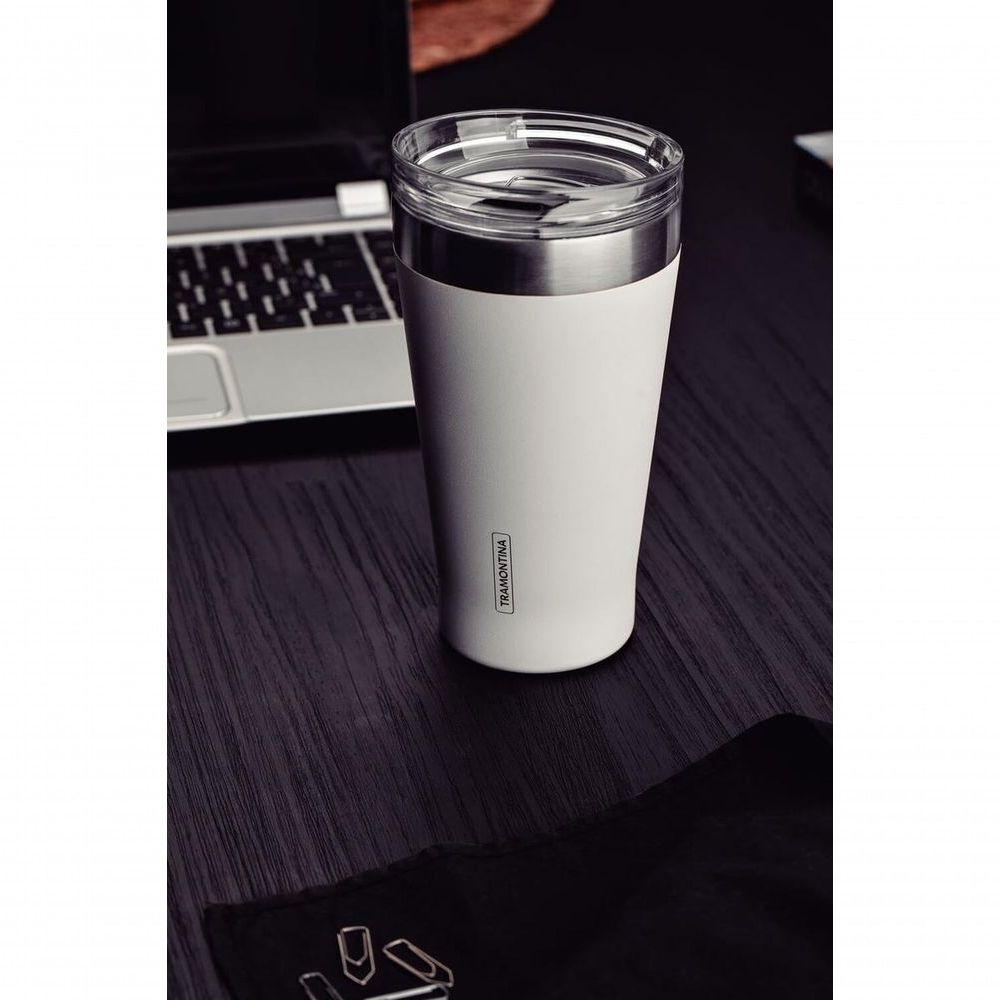 Copo Térmico Branco Em Aço Inox Tramontina Exata Com Tampa 550ml