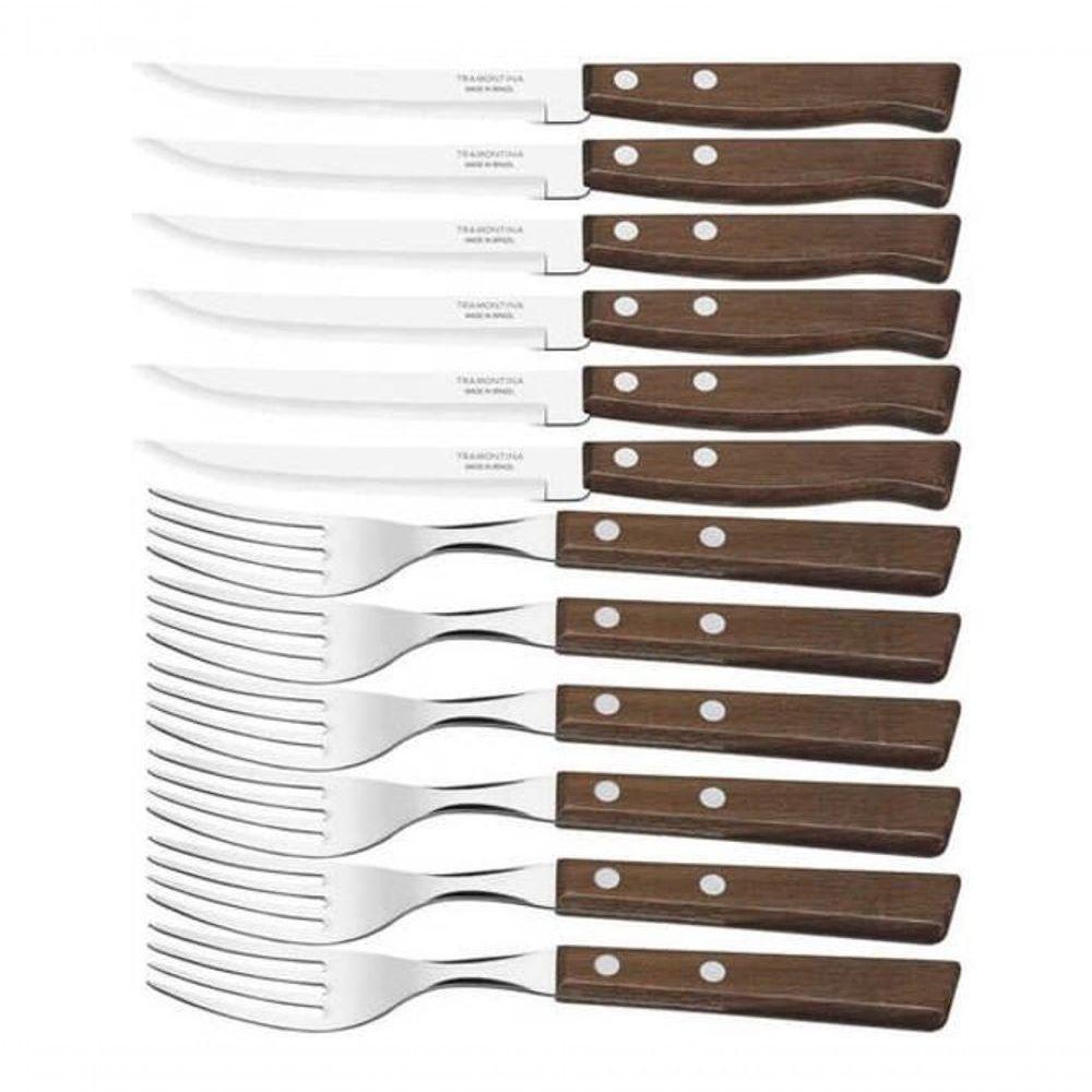 Jogo De Churrasco Tramontina Cabo De Madeira Natural 12 Peças