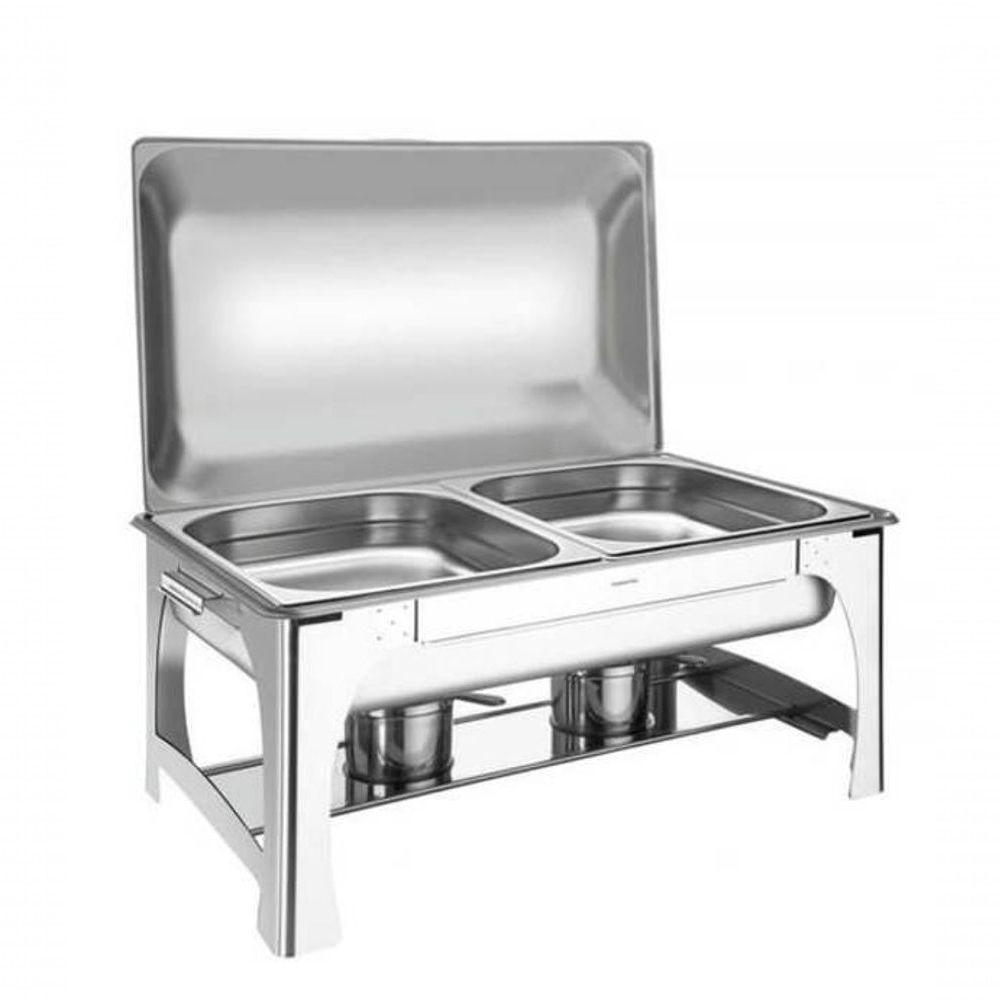 Rechaud Tramontina Retangular Inox Banho Maria Tampa Removível Com Fogareiro Cuba Gn 1-2 8,4 L