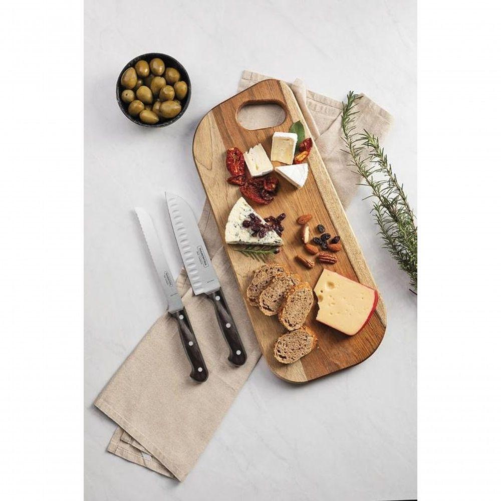 Conjunto Para Frios Tramontina Polywood Aço Inox E Cabos De Madeira Castanho 3 PeçasServir bem começa nos detalhes. O kit para frios Tramontina Polywood, com 3 peças, reúne praticidade e um visual encantador para tornar sua mesa ainda mais convidativa. Com lâminas em aço inox de alta resistência e cabos de madeira tratada Polywood na cor castanho, as facas garantem cortes precisos e um manuseio . Acompanha uma tábua versátil que facilita tanto o preparo quanto o momento de servir, além de ser fácil de limpar. Seja para queijos, embutidos ou petiscos, esse conjunto se destaca pelo acabamento refinado e pela robustez dos materiais. Um item indispensável para quem gosta de receber bem e valoriza a qualidade no dia a dia.Recomendações de Uso:Modo de uso: ;Tenha cuidado ao manusear produtos cortantes e perfurantes e mantenha-os fora do alcance das crianças. Para maior durabilidade dos produtos recomenda-se secar bem antes de guardar, mesmo após lavagem em máquina. Para descarte dos produtos e embalagens siga as orientações de reciclagem vigentes.- Foto meramente ilustrativa.Informações Adicionais:- Lâminas de aço inox;- Podem ir à máquina de lavar louças facilitando seu dia a dia;- A lâmina da faca têm maior durabilidade do fio devido ao tratamento térmico;- Os cabos de madeira tratada Polywood são resistentes à impactos e alta temperaturas garantindo maior resistência e durabilidade.