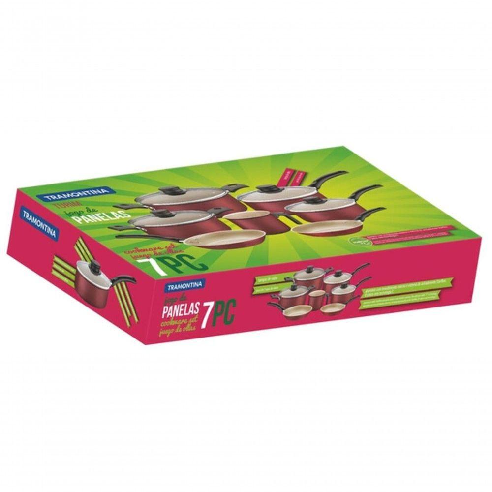 Jogo De Panelas Tramontina Turim Antiaderente 7 Peças VermelhoA Linha Turim sempre faz sucesso na sua cozinha. Além da praticidade do cozimento uniforme, proporcionado pelo revestimento interno e externo de antiaderente Starflon T1, elas permanecem bonitas por muito mais tempo. São fáceis de limpar, pois, devido ao antiaderente, os alimentos não grudam.Recomendações de Uso:- Ao utilizar utensilios quentes tenha cuidado redobrado. Se necessário, utilize proteção para as mãos e mantenha fora do alcance de crianças. - Para sua , ao utilizar utensílios com cabos, mantenha os mesmos sempre voltados para o centro do fogão. - Ao utilizar seu utensílio em fogões com grade, mantenha a peça centralizada e alinhe o cabo com a grade, para reduzir o risco de queda.- Para descarte dos produtos e embalagens siga as orientações de reciclagem vigentes.Informações Adicionais:- Alumínio com revestimento interno e externo de antiaderente Starflon T1.- Tampas de vidro temperado com borda de aço inox.- Imagem meramente ilustrativa.