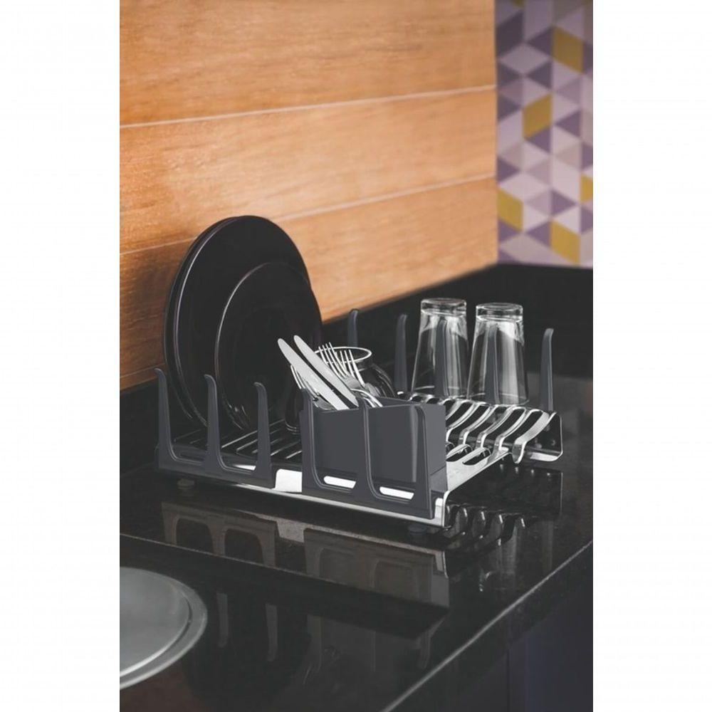 Escorredor De Louça Tramontina Em Aço Inox Com Porta Copos E Talheres Grafite