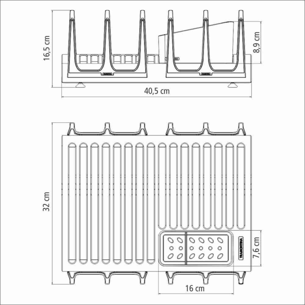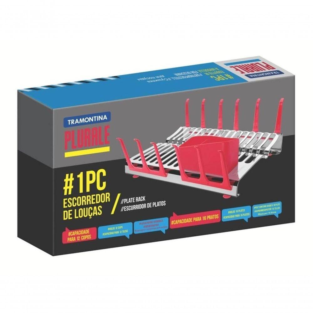 Escorredor De Louça Tramontina Em Aço Inox Com Porta Copos E Talheres GrafiteVocê irá surpreender-se com o Escorredor de Louça Tramontina em Aço Inox com Secador de Copos e Porta Talheres Grafite da linha Plurale. Uma peça que proporcionará para a sua cozinha praticidade, além de beleza e modernidade com seu design inovador. O produto certo para deixar a sua cozinha mais descontraída, sem deixar de lado a funcionalidade para o dia a dia.Recomendações de Uso:Antes do uso: Remova as eventuais etiquetas e lave-o com água quente e de uso: Recomendamos que seja lavado somente com detergente e esponja. Depois da lavagem, sempre que possível, enxágue o produto com água quente e seque-o imediatamente, para que se mantenha com o brilho , pois o cloro e as substâncias contidas na água podem deixar ções de montagem: Encaixe o porta-copos nos rasgos do escorredor. Desloque o porta-copos para o centro da peça para perfeita fixaçã caso de desmontagem desloque e retire as peças removendo-as da base.Informações Adicionais:- Cor: Grafite;- Pés de silicone;- Altura: 16,5 cm;- Corpo em aço inoxidável;- Acabamento em alto brilho;- É possível acomodar 16 pratos e 12 copos, além de talheres e outros utensílios;- Porta-talheres e porta-copos de polipropileno, com encaixe no corpo do escorredor.- Foto meramente ilustrativa.