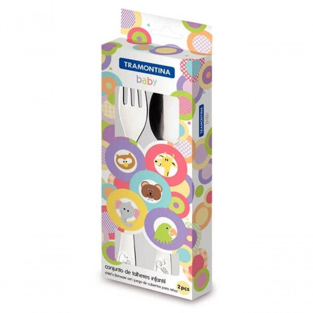 Jogo De Talheres Infantil Tramontina Baby Friends Em Inox Com Desenho Alto Relevo 2 Peças