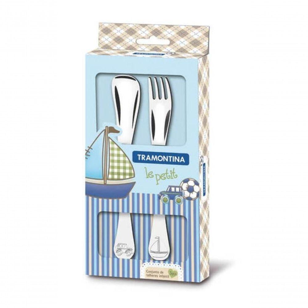 Jogo De Talheres Infantil Tramontina Le Petit Em Inox Desenho Em Alto Relevo 2 Peças