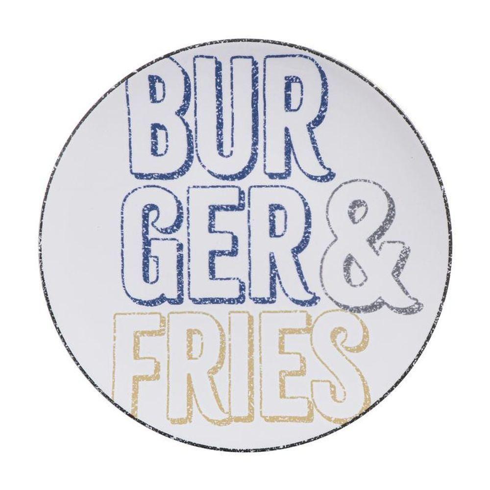 Prato Raso Tramontina Texas 25cm Em Porcelana Decorada Com um visual que celebra o hambúrguer como ícone da culinária americana, o prato raso Tramontina 25 cm da coleção Texas leva autenticidade e atitude para a sua mesa. A inscrição “Burger and Fries” em destaque reforça o clima despojado e cheio de personalidade, ideal para quem curte servir hambúrgueres com estilo. Perfeito para encontros casuais e refeições descontraídas, é a escolha certa para transformar até os momentos mais simples em ocasiões marcantes.;Recomendações de Uso:Modo de Uso: ;Ao usar o produto pela primeira vez, lavar bem a peça com esponja macia e sabão neutro. Lavar as peças utilizando esponja macia e sabão neutro. Não levar as peças ao forno. Não submeter as peças a chama direta.- Foto meramente ilustrativa.Informações Adicionais:- Uso: Resistente a micro-ondas e lava-louças.- Porosidade próxima de , evitando a proliferação de fungos e bactérias. ;
