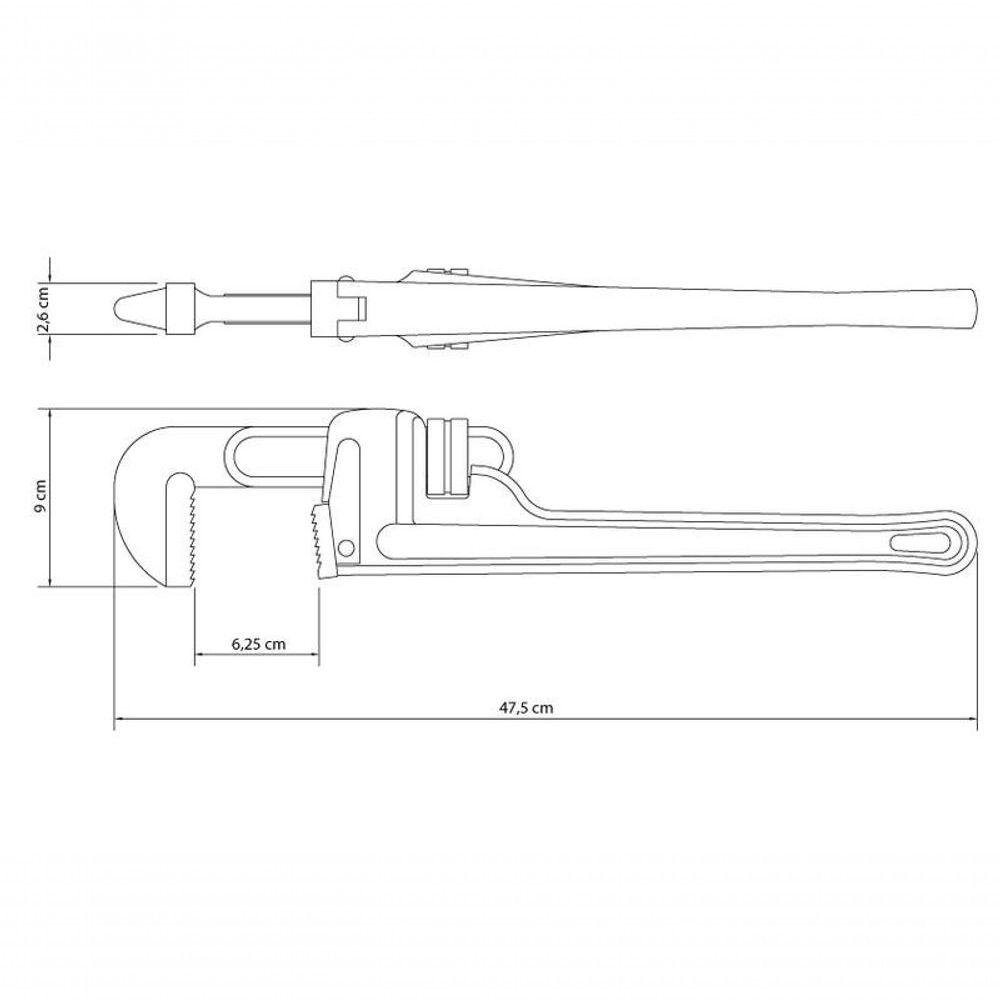 Chave Para Tubos Tramontina Master 18" Em Ferro Fundido Modelo AmericanoNa manutenção ou instalação de tubos hidráulicos, use ferramentas que facilitam seu trabalho. A Chave para Tubos 18 Polegadas Tramontina MASTER, com corpo em ferro fundido e mandíbulas em aço alto carbono no modelo americano, é resistente, de altíssima qualidade e possui mordente regulável para máxima versatilidade. Tenha seus afazeres sempre em dia com Tramontina!Recomendações de Uso:Modo de uso: ;Use óculos, luvas e outros equipamentos de proteção de acordo com a tarefa a ser executada. Não golpeie as chaves, a não ser que sejam projetadas para este fim. Sempre utilize uma chave de bitola correta para cada parafuso ou porca para que não haja folga, pois isso danifica a chave e o parafuso. Mantenha a chave limpa para um melhor agarre, pois usá-la suja com graxa ou óleo pode causar acidentes. Não use tubos ou extensões para obter mais torque. Não altere a forma das chaves. Armazene em limpo e seco.- Foto meramente ilustrativa.Informações Adicionais:- Pintura eletrostática;- Abertura dos mordentes regulável;- Mais indicada para tubos não endurecidos;- Específica para instalações e manutenções hidráulicas;- Corpo e porca reguladora de abertura em ferro fundido;- Mandíbulas forjadas em aço alto carbono e temperadas;- As ferramentas são produzidas e testadas conforme normas específicas;- O teste de dureza é realizado em vários pontos para assegurar a resistência ao desgaste da chave durante o uso ininterrupto.