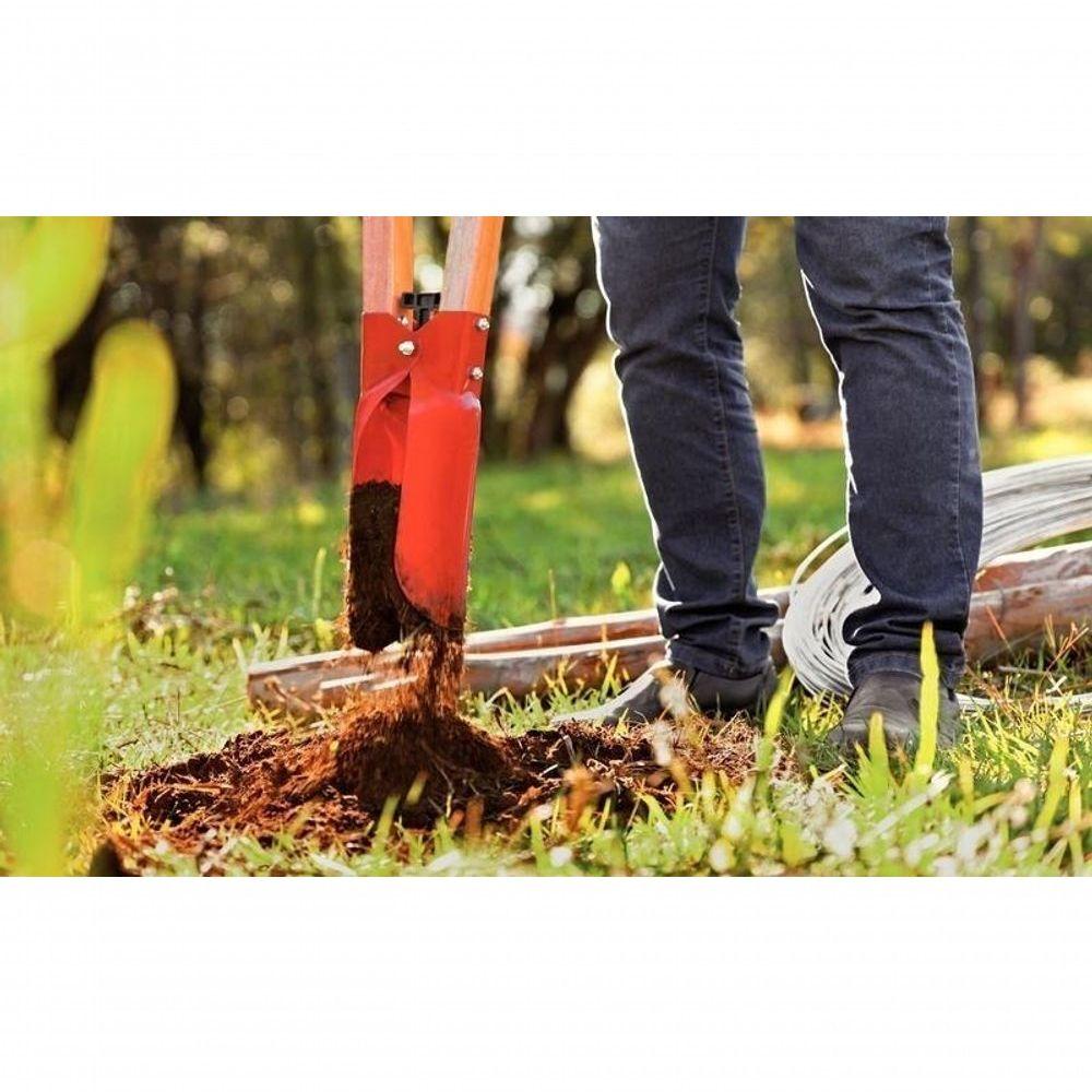 Cavadeira Articulada Tramontina Com Cabo De Madeira 120cm E BatentePara realizar escavações com mais eficiência, conte com a cavadeira articulada metálica Tramontina com cabos de madeira 120 centímetros e batente plástico. Com ela, é possível cavar buracos e retirar a terra de forma rápida e prática. Sua lâmina afiada garante maior facilidade na perfuração do solo, enquanto o batente plástico evita a colisão entre as mãos durante o uso, proporcionando mais conforto e .Recomendações de Uso:Modo de uso: Utilizadas nas atividades da agricultura, jardinagem e da construção civil. Servem para cavar e retirar a terra em uma única operação e são indispensáveis para abrir buracos, transplantar plantas, colocar postes, abrir valas para canos ou cavar e retirar a terra sem grande esforço. ;Para descarte dos produtos e embalagens siga as orientações de reciclagem vigentes.- Foto meramente ilustrativa.Informações Adicionais:- Fabricada em aço carbono especial de alta qualidade;- Recebe pintura eletrostática a pó, que tem uma melhor apresentação visual e maior proteção contra oxidação;- O cabo de 120 cm desta ferramenta, além de possuir ótima resistência, é produzido com madeira de origem renovável;- A cavadeira é temperada em todo o corpo da peça, proporcionando maior resistência e menor desgaste durante o uso;- Possui batente em polipropileno que limita o ângulo de fechamento dos cabos, evitando o choque entre as mãos e proporciona um trabalho mais ergonômico e ;- Cabo com acabamento envernizado, para um melhor acabamento e apresentação do produto. A camada protetora em verniz incolor realça sua tonalidade, concedendo brilho e um toque mais liso ao produto.
