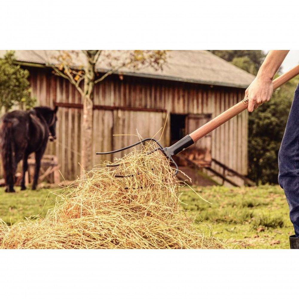 Forcado Reto De Arame Tramontina 5 Dentes Com Cabo De Madeira 120cmPara tornar suas atividades diárias mais práticas e eficientes, conte com o forcado metálico reto de arame Tramontina 4 dentes com cabo de madeira 120 centímetros. Produzido em aço carbono de alta qualidade e temperado para maior resistência, ele garante durabilidade mesmo nas tarefas mais exigentes. O cabo de madeira renovável, com 120 cm de comprimento, proporciona conforto no manuseio e excelente alcance. Ideal para o manuseio de feno, pasto e outros materiais leves, essa ferramenta é perfeita para quem busca desempenho e praticidade. Com as ferramentas Tramontina, seu trabalho rende mais com menos esforço.Recomendações de Uso:Modo de uso: ;Utilizado para carregar, ajuntar ou revirar feno, alfafa, pasto, etc. Para descarte dos produtos e embalagens siga as orientações de reciclagem vigentes.- Foto meramente ilustrativa.Informações Adicionais:- Possui 4 dentes;- Fabricado em aço carbono especial de alta qualidade;- Recebe pintura eletrostática a pó, que tem uma melhor apresentação visual e maior proteção contra oxidação;- A tinta utilizada na pintura é isenta de metais pesados na sua composição, o que minimiza o impacto ambiental;- O cabo de 120 cm desta ferramenta, além de possuir ótima resistência, é produzido com madeira de origem renovável;- O forcado é temperado em todo o corpo da peça, proporcionando maior resistência e menor desgaste durante o uso;- Cabo com acabamento envernizado, para um melhor acabamento e apresentação do produto. A camada protetora em verniz incolor realça sua tonalidade, concedendo brilho e um toque mais liso ao produto.