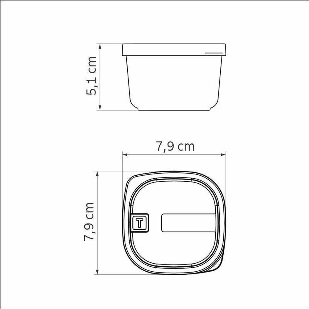 Pote Tramontina Mixcolor Verde Sálvia Em Polipropileno 150mlO pote Tramontina MixColor em polipropileno verde sálvia 150 mililitros é ideal para armazenar pequenas porções de alimentos com e organização. Seja para temperos, snacks ou ingredientes do dia a dia, ele garante praticidade com seu tamanho compacto e fácil de acomodar em gavetas, prateleiras ou lancheiras. Produzido em polipropileno resistente, conta com tampa transparente que facilita a visualização do conteúdo. A tonalidade verde sálvia traz um toque moderno à sua cozinha, unindo funcionalidade e bom gosto na medida certa.Recomendações de Uso:Modo de Uso: ;Antes da primeira utilização, lave bem as peças e seque-as. Para limpeza, use somente esponja macia e detergente neutro. Não utilize materiais abrasivos. Com o uso, é normal que apareçam riscos no interior dos potes. Enquanto estiver congelado, evite impactos. Não coloque o pote em direto com superfícies quentes. Ao levar ao micro-ondas, deixe a tampa do pote entreaberta. Recomenda-se mexer o alimento durante o aquecimento no micro-ondas. Nunca utilize a função grill do micro-ondas. Evite aquecer alimentos como chocolates, caramelos, açúcar, e alimentos gordurosos, pois podem atingir altas temperaturas e danificar seu pote. Não utilize o pote para fazer pipocas no microondas pois irá danificá-lo. Molhos com forte pigmentação, como de tomate, açafrão e curry podem manchar o interior das peças. Guarde os potes separados das tampas para evitar odores. Para descarte dos produtos e embalagem siga as orientações de reciclagem vigentes.- Foto meramente ilustrativa.Informações Adicionais:- Tampa transparente que facilita o dia a dia;- Pote e tampa de polipropileno com maior resistência e durabilidade;- Pode ser levado à máquina de lavar, micro-ondas, refrigerador e freezer, facitando o dia a dia;- Produto Livre de BPA: O Bisfenol-A é um componente químico na produção de alguns plásticos a Tramontina não o utiliza em seus produtos;- Pote com proteção antimicrobiana que inibe o crescimento de fungos e bactérias, proporcionando benefícios em higiene e redução de microorganismos que causam contaminação.