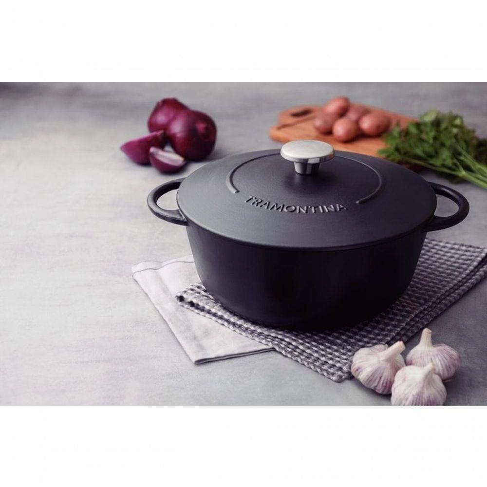 Caçarola Tramontina Trento Antiaderente 28cmA escolha perfeita para deixar um sabor caseiro em todas as suas receitas é a Caçarola em Ferro Fundido Esmaltado 28 cm com atiaderente interno Starflon Excellent Tramontina Trento. Cozinha os alimentos de maneira uniforme e evita que eles grudem em sua superfície. Ainda pode ser levada ao forno para . Mais versartilidade para sua cozinha!Recomendações de Uso:Antes do Uso: Remova eventuais etiquetas, lave interna e externamente usando apenas uma esponja macia, sabão neutro ou detergente líquido. Outros tipos de produtos, como palha de aço, poderão riscar ou prejudicar a peç de Uso:Posicione os cabos dos utensílios voltados ao centro do fogã fogões com grade, centralize a peça e alinhe o cabo com a utilizar em fogões de base lisa, levante a peça para movimentá-la, evitando riscos em seu fogãílios quentes devem estar fora do alcance de crianç produto não pode sofrer modificaçõ do primeiro uso, lave manualmente com esponja macia, sabão ou detergente com pano de secar, unte a área interna com óleo ou gordura e leve ao fogo por um ou dois esfriar e lave utensílio está pronto para uso com ou sem gordura, sempre em fogo baixo ou médio (nunca superior a 260ºC).Seque totalmente as peças com pano macio e guarde-as sempre em locais secos e arejados, longe de vapor ou qualquer mexer os alimentos use somente utensílios de silicone, nylon ou ferro esmaltado é extremamente resistente, mas pode ser se cair ou bater contra uma superfície dura, portanto evite quedas e impactos, que podem provocar o desprendimento do isto ocorrer, poderá haver a formação de ferrugem na área afetada, não alterando o desempenho do utensí proteger a área danificada, unte com óleo alimentício embebido em papel toalha.Limpeza: Evite choque térmico: não mergulhe o utensílio quente em água utilize produtos abrasivos na deixar queimar alimentos, umedeça a área com água e limpe com esponja e sabão ós a limpeza, aplique uma fina camada de óleo alimentício na borda da peça (corpo e tampa).Para descarte dos produtos e embalagens siga as orientações de reciclagem vigentes.Informações Adicionais:- Pegador de aço inox;- Ferro fundido esmaltado com espessura de 3,2 mm;- Revestimento interno de antiaderente Starflon Excellent;- Pode ser levada ao forno para das receitas;- A capacidade volumétrica máxima para cozimento é de 3/4 da capacidade total da peça.- Foto meramente ilustrativa.