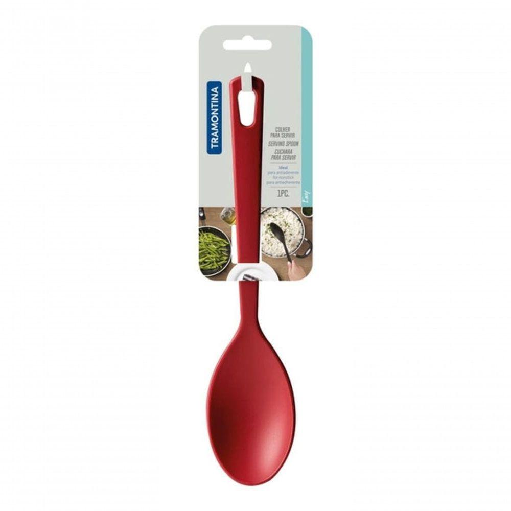 Colher Tramontina Reta Ability 28,5cm Em Nylon VermelhaCom os utensílios da linha Easy sua cozinha ficará muito mais elegante e bonita. São utensílios práticos e eficientes para preparar as receitas com perfeição e tornar esse momento ainda mais especial. A Colher Tramontina para Servir Vermelho em Nylon é perfeita para qualquer cozinha, tornando a rotina do chef ainda mais prática e prazerosa.Recomendações de Uso:Modo de uso: antes da primeira utilização, lave e seque bem a peça. Para limpeza, use somente esponja macia e detergente neutro. Não utilize materiais abrasivos. Para maior durabilidade do produto recomenda-se secar bem antes de guardar, mesmo após lavagem em máquina.- Foto meramente ilustrativa.Informações Adicionais:- Colher de nylon.- Resistente até 180°C.- o Cabo Possui furo passante possibilitando que seja pendurado Na sua cozinha.- Utensílio ideal para uso em panelas com revestimentos antiaderentes e cerâmicos, pois não danifica o produto.- resistente à máquina de lavar louças.