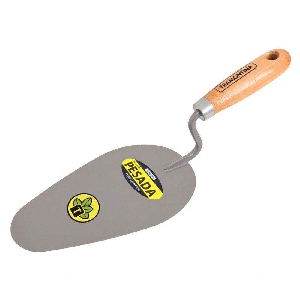 Colher De Pedreiro Redonda Tramontina 8 Em Aço Cabo De MadeiraPara alcançar melhores resultados em construções e reformas, conte com a colher de pedreiro redonda 8" Tramontina em aço com cabo de madeira. Com lâmina de 8 polegadas, ela é fabricada em aço especial e possui corpo totalmente temperado, garantindo mais resistência e menor desgaste durante o uso. Seu cabo de madeira envernizada oferece acabamento superior, toque mais liso e ótima pegada, tornando o manuseio mais confortável e eficiente. Uma ferramenta robusta, ideal para elevar o desempenho em qualquer tipo de obra.Recomendações de Uso:Modo de uso: Serve ;para quebrar e assentar tijolos, aplicar argamassa ou qualquer outra mistura utilizada na construção. Para descarte dos produtos e embalagens siga as orientações de reciclagem vigentes.- Foto meramente ilustrativa.Informações Adicionais:- Lâmina com tamanho 8";- Fabricada em aço carbono especial de alta qualidade;- A guarnição metálica protege o cabo contra rachaduras e desgastes;- O cabo desta ferramenta, além de possuir ótima resistência, é produzido com madeira de origem renovável;- Para deixar a ferramenta com alta qualidade e ótimo acabamento, a haste é soldada através do processo TIG;- Recebe pintura eletrostática a pó, que tem uma melhor apresentação visual e maior proteção contra oxidação;- A colher é temperada em todo o corpo da peça, proporcionando maior resistência e menor desgaste durante o uso;- Cabo com acabamento envernizado, para um melhor acabamento e apresentação do produto. A camada protetora em verniz incolor realça sua tonalidade, concedendo brilho e um toque mais liso ao produto.