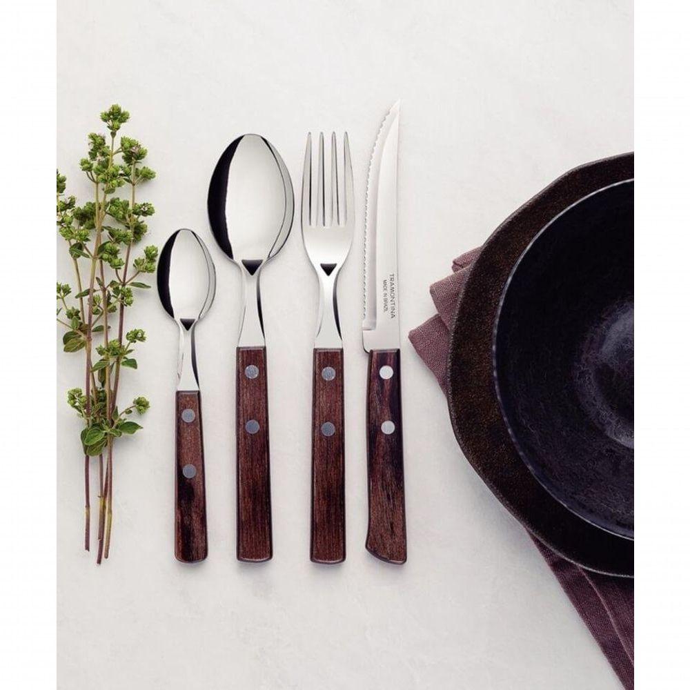 Faqueiro Tramontina Aço Inox Polywood Castanho 24 Peças