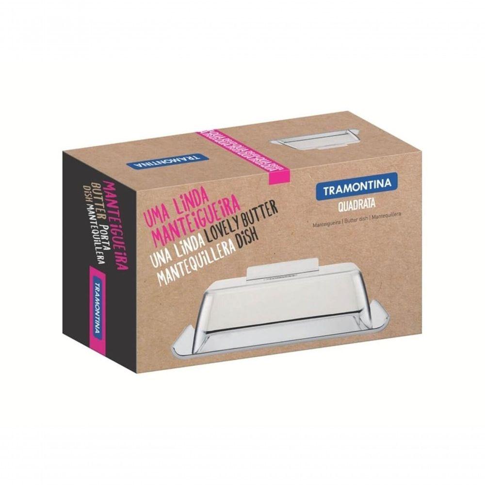 Manteigueira Retangular Tramontina Quadrata Em Aço Inox Com Tampa TransparenteTraços simples e elegantes traduzem a linha Quadrata da Tramontina. Com os produtos ideais para compor a mesa do café, do almoço ou do jantar, o inclui prato de aço inox com cúpula de acrílico, porta-frios, açucareiro de acrílico com tampa e colher de aço inox e jarra de acrílico com tampa de aço inox.Recomendações de Uso:Antes do uso: Antes de utilizar o , remova as eventuais etiquetas e lave-o com água quente e de uso: Use apenas sabão ou detergente e uma esponja macia. Outros tipos de produto como palha de aço, poderão riscar ou prejudicar o brilho da peça. Enxágue cada item a fim de remover totalmente os resíduos dos produtos de limpeza, que, por serem abrasivos, podem danificar o inox. Sempre que possível, use água quente, pois renova o brilho da peça. Após a lavagem, enxugue imediatamente a peça, caso contrário, as substâncias químicas da água (cloro) poderão causar manchas. Evite atrito entre as peças durante o processo de lavagem e no armazenamento, para mantê-la sem riscos. Evite o do produto com superfícies quentes, pois elas provocam a descoloração do material. Não guarde a peça em locais úmidos. A umidade também provoca manchas.- Foto meramente ilustrativa.- Embalagem litografada.Informações Adicionais:- Prato de aço inoxidável, altamente durável, mantém suas características , preservando a beleza, a higiene e a durabilidade do material. - Cúpula de SAN transparente de alta resistência que permite visualizar os alimento - Ideal para ser levado à mesa em qualquer ocasião, além de manter a qualidade do alimento por muito mais tempo. - Design moderno e prático. - Pode ser lavado diariamente na máquina de lavar louças.