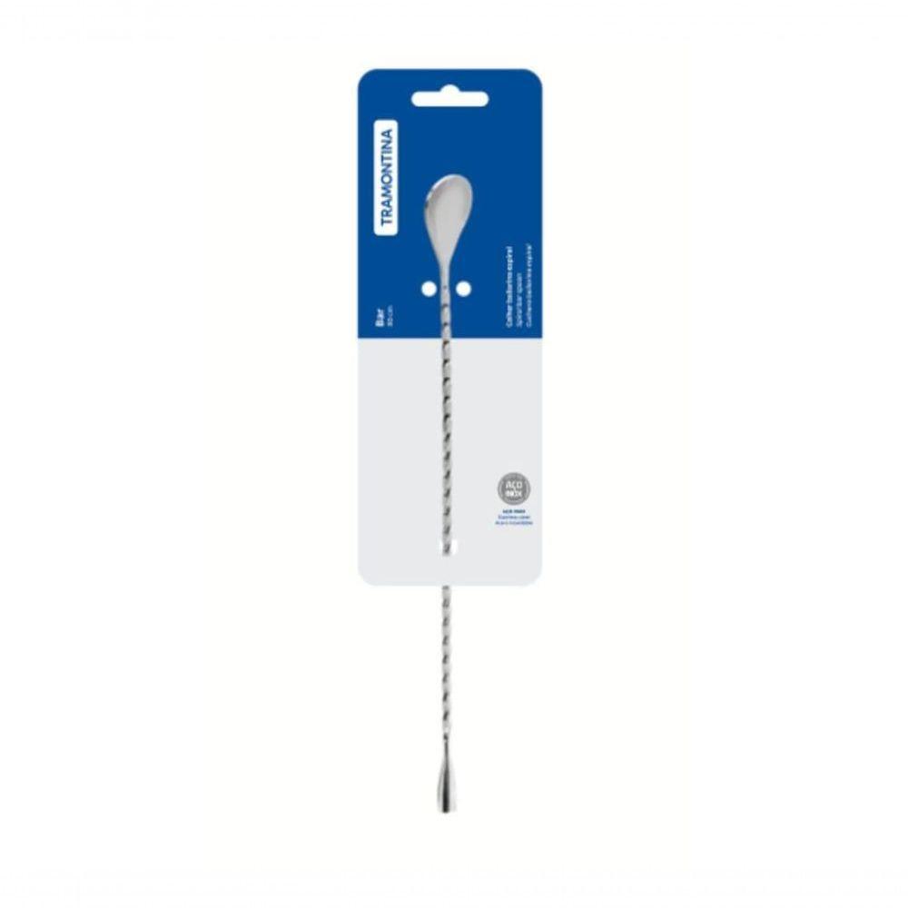Colher Bailarina Espiral Tramontina Em Aço Inox 30cmPara misturar seu coquetel e deixar sua apresentação uniforme, conte com a colher bailarina espiral Tramontina em aço inox 30 centímetros. Composta por bojo com formato de medida padrão de açúcar e cabo em espiral, ela foi desenvolvida para facilitar a mistura de drinks e coquetéis, tornando o preparo muito mais prático. Sua produção é em aço inox com acabamento em brilho, o que a torna muito mais durável, resistente e fácil de limpar!Recomendações de Uso:Modo de Uso: Use apenas sabão ou detergente e uma esponja macia. Outros tipos de produto como palha de aço, poderão riscar ou prejudicar o brilho das peças. Enxágue cada item a fim de remover totalmente os resíduos dos produtos de limpeza, que, por serem abrasivos, podem danificar o inox. Sempre que possível, use água quente, pois renova o brilho das peças. Após a lavagem, enxugue imediatamente as peças, caso contrário, as substâncias químicas da água (cloro) poderão causar manchas. Evite atrito entre as peças durante o processo de lavagem e no armazenamento, para mantê-las sem riscos. Evite o do produto com superfícies quentes, pois elas provocam a descoloração do material. Não guarde as peças em locais úmidos. A umidade também provoca manchas.Informações Adicionais:- Acabamento em brilho;- Totalmente feito de aço inox;- Ideal para misturar os coquetéis em copos profundos;- Podem ser lavados, diariamente, na máquina de lavar louças;- Bojo com formato de medida padrão de açúcar, ponta do cabo comum;- Seu cabo espiral foi especialmente projetado para facilitar a mistura de drinks e coquetéis, tornando o preparo muito mais prático.- Foto meramente ilustrativa. ;