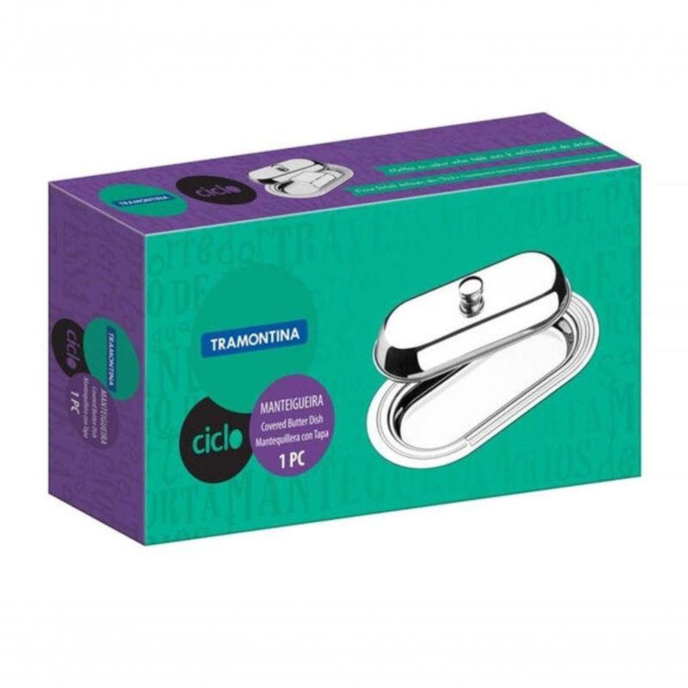 Manteigueira Retangular Tramontina Ciclo Em Aço Inox Com TampaSeja no seu café-da-manhã ou com convidados em eventos, com a Manteigueira Tramontina Ciclo em Aço Inox com Tampa a elegância e praticidade estão garantidas. Com tamanho ideal para servir e armazenar manteigas, ela organiza e embeleza o ambiente. Ela garante bom gosto e qualidade por ser totalmente produzida em aço inox. É um utensílio com design diferenciado que dá um toque especial na composição da sua mesa.Recomendações de Uso:Modo de Uso: ;Use apenas sabão ou detergente e uma esponja macia. Outros tipos de produto como palha de aço, poderão riscar ou prejudicar o brilho das peças. Enxágue cada item a fim de remover totalmente os resíduos dos produtos de limpeza, que, por serem abrasivos, podem danificar o inox. Sempre que possível, use água quente, pois renova o brilho das peças. Após a lavagem, enxugue imediatamente as peças, caso contrário, as substâncias químicas da água (cloro) poderão causar manchas. Evite atrito entre as peças durante o processo de lavagem e no armazenamento, para mantê-las sem riscos. Evite o do produto com superfícies quentes, pois elas provocam a descoloração do material. Não guarde as peças em locais úmidos. A umidade também provoca manchas.- ;Foto meramente ilustrativa.Informações Adicionais:- Ideal para servir à mesa;- Higiênica e de fácil limpeza;- Beleza e praticidade em seu design;- Pode ser lavada diariamente na máquina de lavar louças;- Acabamento em brilho, ;com detalhes em alto relevo nas bordas;- Totalmente feita de aço inox, por isso não solta nenhum resíduo nos alimentos, mantendo-os saudáveis. ;- Altamente durável mantém suas características , preservando a beleza, a higiene e a durabilidade do material. ;