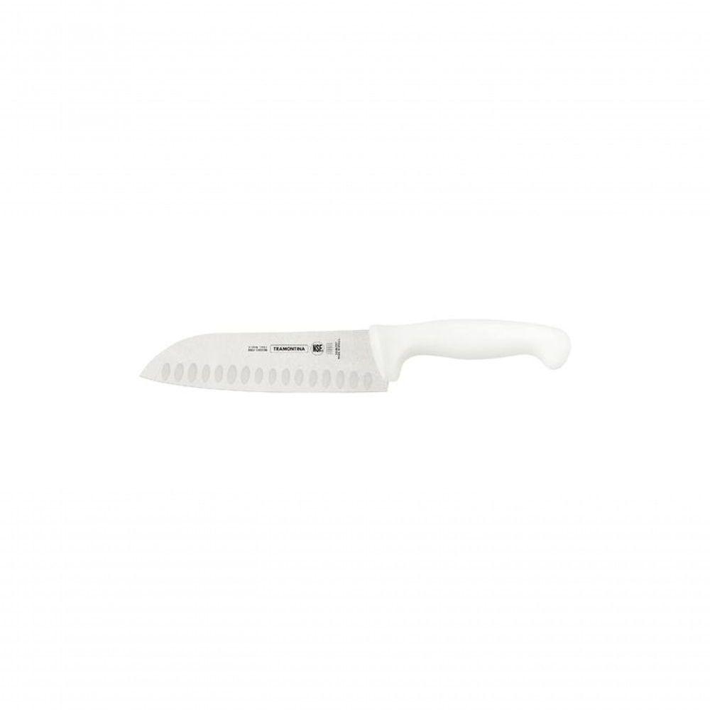 Faca Para Fatiar E Picar Tramontina Com Lâmina Em Aço Inox E Cabo De Polipropileno Branco 7Para elevar sua experiência na cozinha, comece escolhendo a faca certa. A Faca para Fatiar e Picar Tramontina , com lâmina em aço inox e cabo de polipropileno branco de 7 polegadas, oferece a praticidade e eficiência que você precisa para tornar seu tempo na cozinha mais agradável. Sua lâmina em aço inox possui cavidades nas laterais para evitar o atrito com o alimento, impedindo que eles grudem enquanto são fatiados. Além disso, o cabo de polipropileno apresenta um formato anatômico que se encaixa perfeitamente na mão, proporcionando ainda mais conforto durante o manuseio. Com toda a qualidade da Tramontina, esta faca tornará o preparo das suas receitas ainda mais prazeroso.Recomendações de Uso:Antes do uso: Antes de utilizar o , remova as eventuais etiquetas e lave-o com água quente e de uso: Durante a lavagem use somente esponja macia, outros tipos de produtos, como palha de aço, poderão riscar ou prejudicar o brilho do aço inox. Enxágue bem a peça a fim de remover totalmente os resíduos dos produtos de limpeza, que por serem abrasivos, podem danificar o inox. Após a lavagem enxugue a faca, pois as substâncias químicas contidas na água poderão causar manchas. Sempre que possível use água quente, pois renova o brilho do talher. Evite o das peças com superfícies quentes, pois podem provocar a descoloração do produto. Quando usar a máquina de lavar louça, recomendamos retirar o talher logo que tenha terminado o ciclo enxaguar, a fim de que os mesmos sejam secados manualmente.- Tenha cuidado ao Manusear produtos cortantes e perfurantes e mantenha-os fora do alcance de crianças.- Foto meramente ilustrativa- Embalagem litografadaInformações Adicionais:- Lâmina resistente, afiada e durável;- Cabo anatômico, higiênico e ;- Ideal para fatiar e picar alimentos com rapidez e precisão;- Cabo em polipropileno texturizado, oferecendo maior conforto e no manuseio;- Cabo injetado diretamente sobre a espiga que garante perfeita fixação e evita a retenção de resíduos;- Desbaste cônico na espessura adequada para cada aplicação, garantindo precisão e durabilidade no fio de corte;- Lâmina de aço inox especial tratado termicamente com processo sub-, garantindo níveis de dureza média de 56 HRc;- Cabo com proteção antimicrobiana que inibem o crescimento de fungos e bactérias, proporcionando benefícios em higiene e redução de microorganismos que causam contaminação.