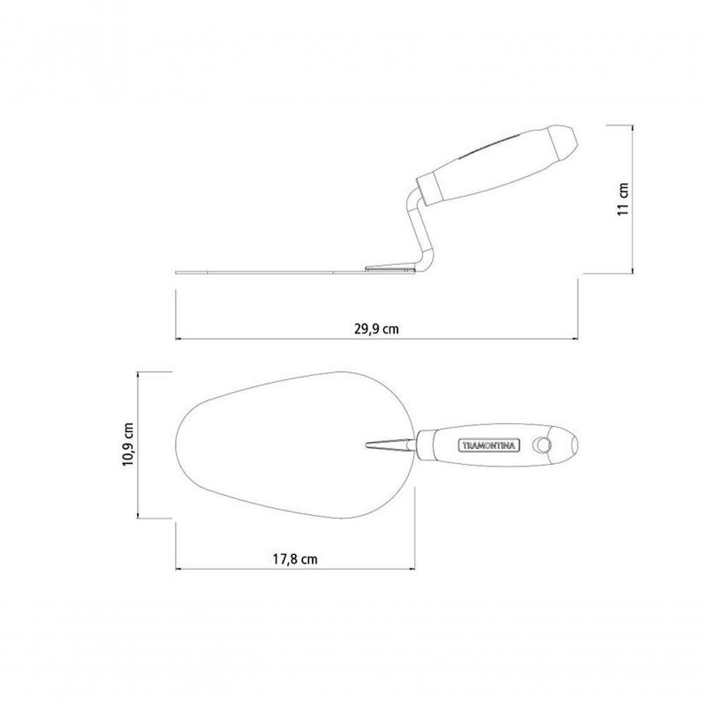 Colher De Pedreiro Redonda Tramontina 7 Em Aço Cabo De MadeiraPerfeita para reformas e construções, a colher de pedreiro redonda 7" Tramontina em aço com cabo de madeira é a aliada ideal para trabalhos com argamassa. Fabricada em aço especial e com lâmina de 7 polegadas, ela possui corpo totalmente temperado, o que assegura alta resistência e menor desgaste no uso contínuo. Seu cabo em madeira de origem renovável é envernizado, oferecendo um toque mais liso, boa pegada e excelente acabamento. Uma ferramenta que combina durabilidade, conforto e eficiência para elevar a qualidade do seu trabalho.Recomendações de Uso:Modo de uso: Serve ;para quebrar e assentar tijolos, aplicar argamassa ou qualquer outra mistura utilizada na construção. Para descarte dos produtos e embalagens siga as orientações de reciclagem vigentes.- Foto meramente ilustrativa.Informações Adicionais:- Lâmina com tamanho 7";- Fabricada em aço carbono especial de alta qualidade;- A guarnição metálica protege o cabo contra rachaduras e desgastes;- O cabo desta ferramenta, além de possuir ótima resistência, é produzido com madeira de origem renovável;- Para deixar a ferramenta com alta qualidade e ótimo acabamento, a haste é soldada através do processo TIG;- Recebe pintura eletrostática a pó, que tem uma melhor apresentação visual e maior proteção contra oxidação;- A colher é temperada em todo o corpo da peça, proporcionando maior resistência e menor desgaste durante o uso;- Cabo com acabamento envernizado, para um melhor acabamento e apresentação do produto. A camada protetora em verniz incolor realça sua tonalidade, concedendo brilho e um toque mais liso ao produto.