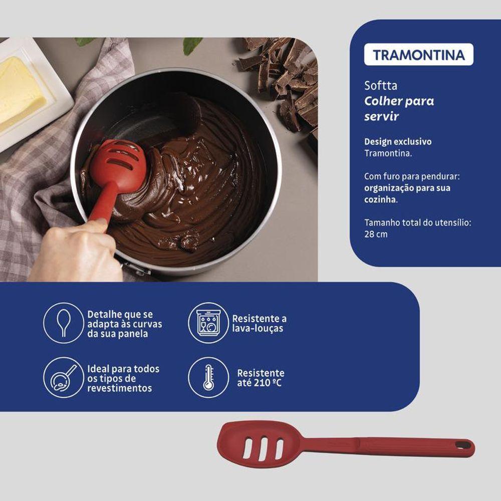 Colher Para Servir Vazada Tramontina Softta Vermelho De Silicone