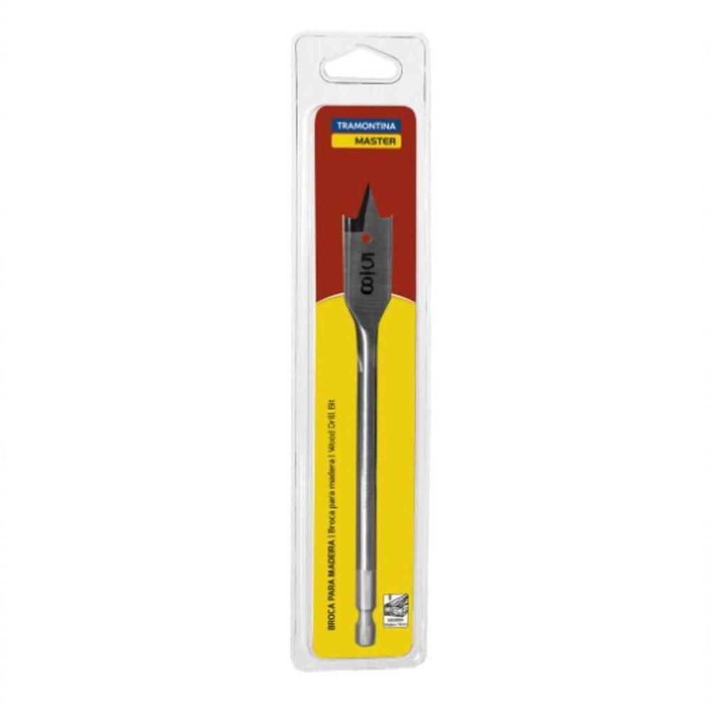 Broca Para Madeira Com Ponta Chata " 150 Mm Tramontina Master Em AçoInvestir continuamente na atualização tecnológica dos meios de produção, na expansão das áreas industriais e no conhecimento é prioridade na Tramontina.Recomendações de Uso:- Sempre utilizar óculos de para proteger os olhos.- utilizar luvas para proteger as mãos.- Tomar cuidado com o fio de corte, pois ele pode ferir o usuário.- Manter a ferramenta sempre limpa para um melhor agarre, pois usá-la suja com graxa ou óleo pode causar acidentes.- Foto meramente ilustrativa.Informações Adicionais:- Corpo em aço especial.- Tempera Total no corpo.- Corpo Polido e envernizado.- Haste com encaixe troca rápida.- Utilizada em trabalhos de perfuração em aço.- As ferramentas são submetidas a testes de aplicação prática para garantir sua resistência em uso intenso.- As ferramentas são produzidas e testadas conforme normas específicas.