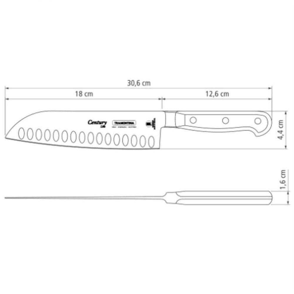 Faca Santoku Tramontina Century Com Lâmina Em Aço Inox E Cabo Em Policarbonato Preto E Fibra De Vidro 7